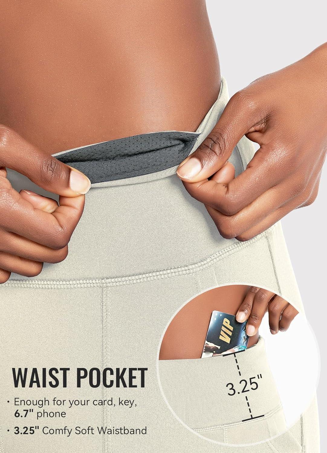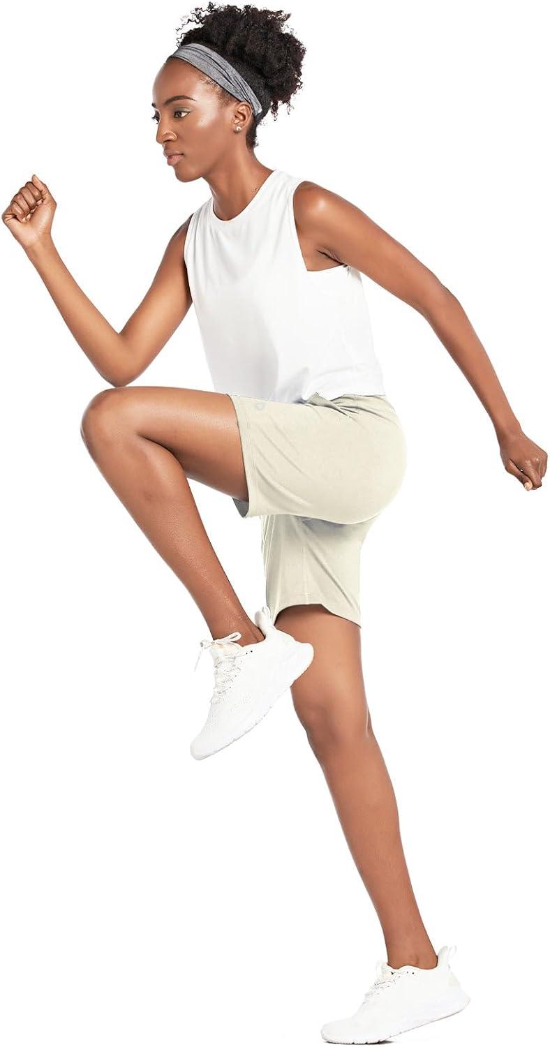 baleaf Bermuda Shorts for Women High Waisted 7” Athletic Long Workout Running Shorts with 3 Pockets(Khaki)