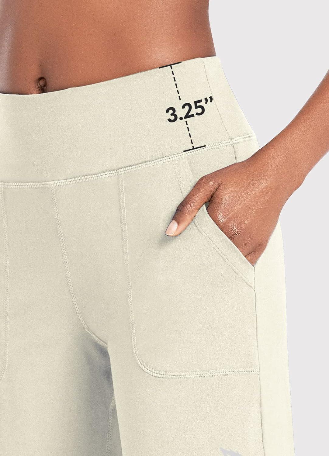 imagebaleaf Bermuda Shorts for Women High Waisted 7 Athletic Long Workout Running Shorts with 3 PocketsKhaki