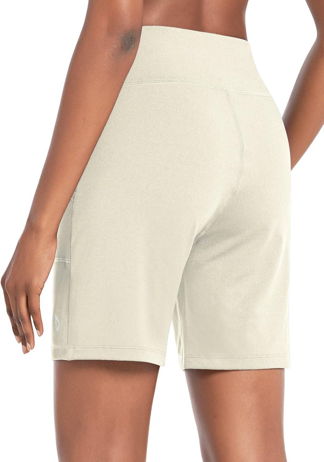 baleaf Bermuda Shorts for Women High Waisted 7'' Athletic Long Workout Running Shorts with 3 Pockets(Khaki)