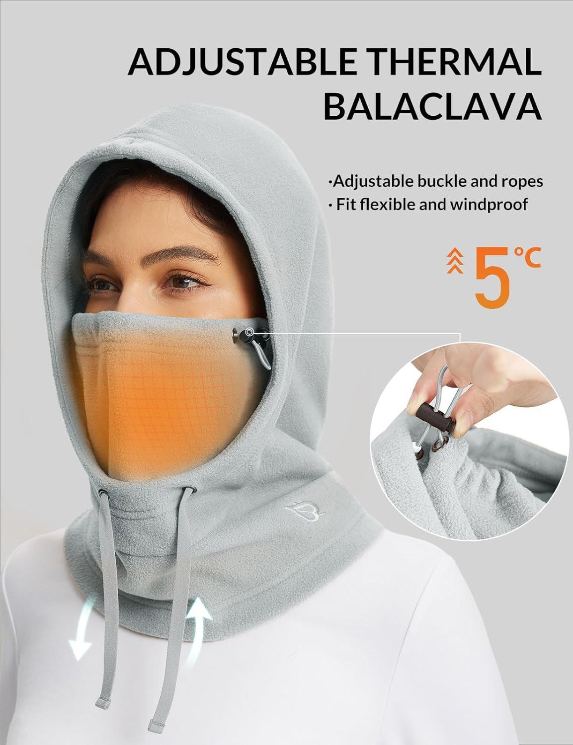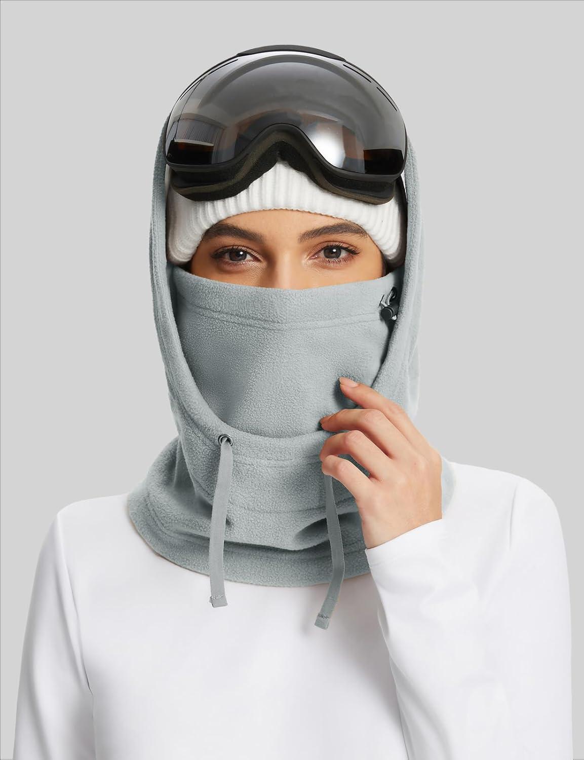 baleaf Fleece Balaclava Face Mask,Thermal Ski Mask for Women,Winter Hats Face Cover Hood Cold Weather Gear. (2 Size)(Grey)