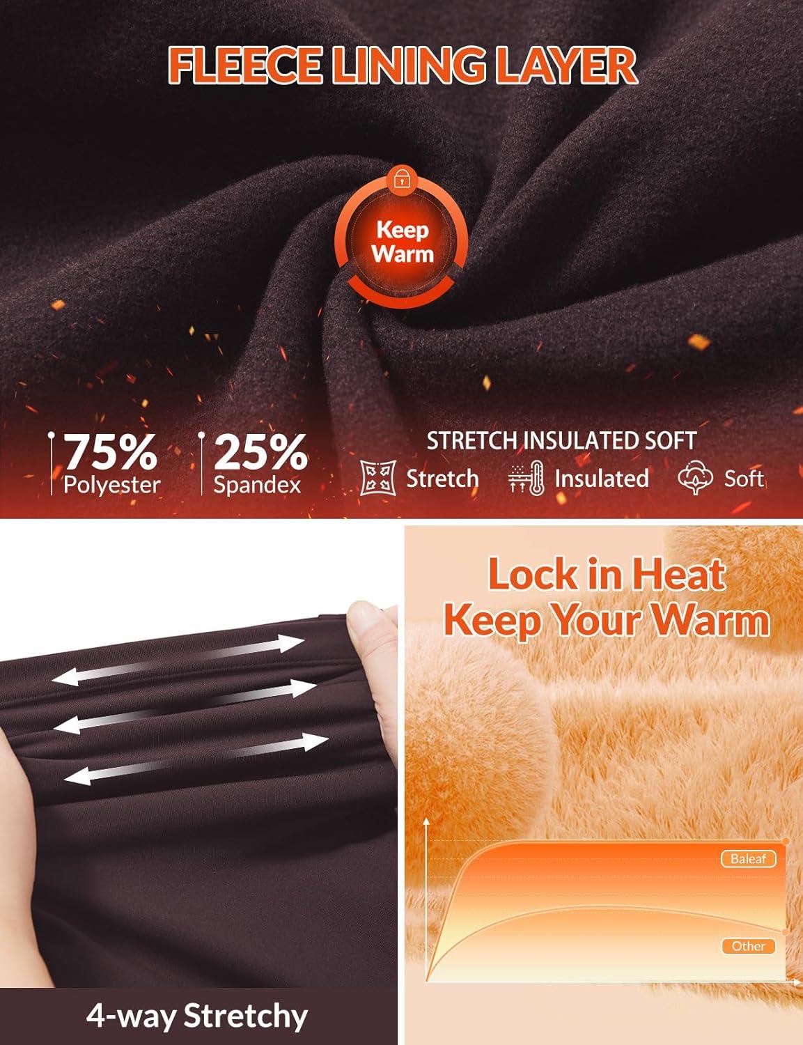 baleaf Fleece Lined Leggings for Women Mini Flare Warm Yoga Pants Stretchy High Waisted with 4 Pockets Workout Casual Pants(Dark Brown)