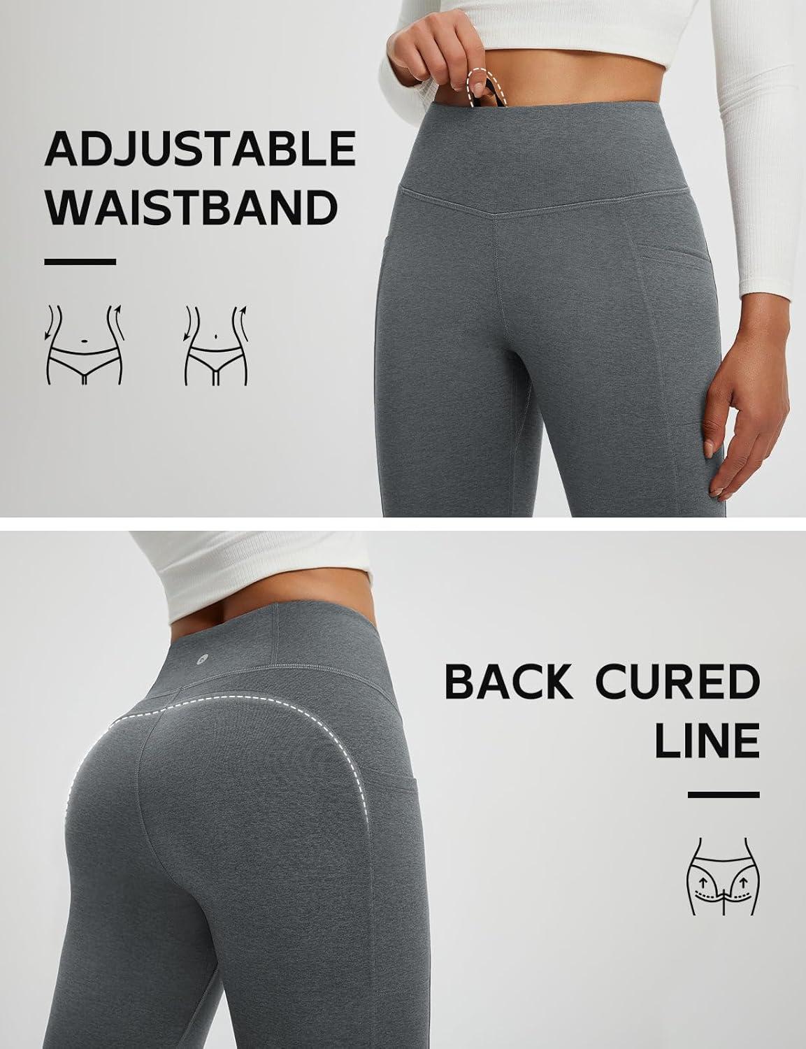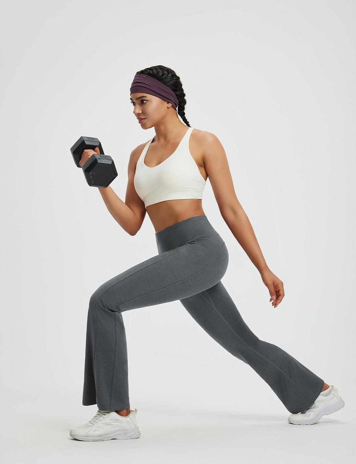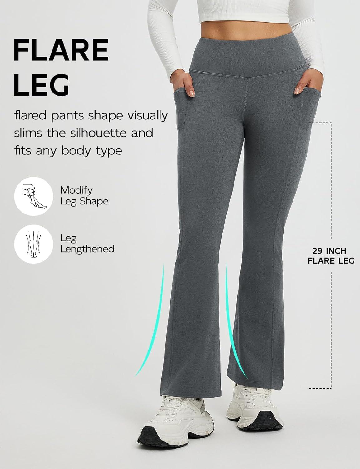 baleaf Fleece Lined Pants Women Heather Flare Leggings Thermal Warm High Waist Winter Yoga Pants with Pockets(Heather Gray)