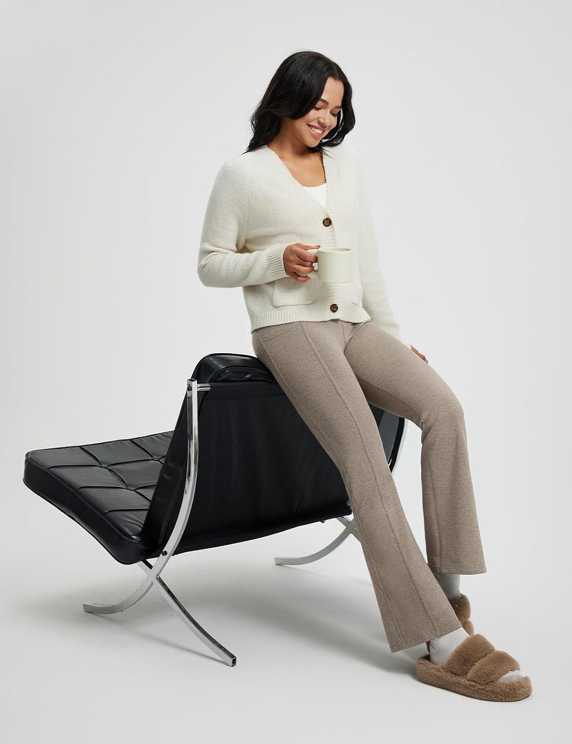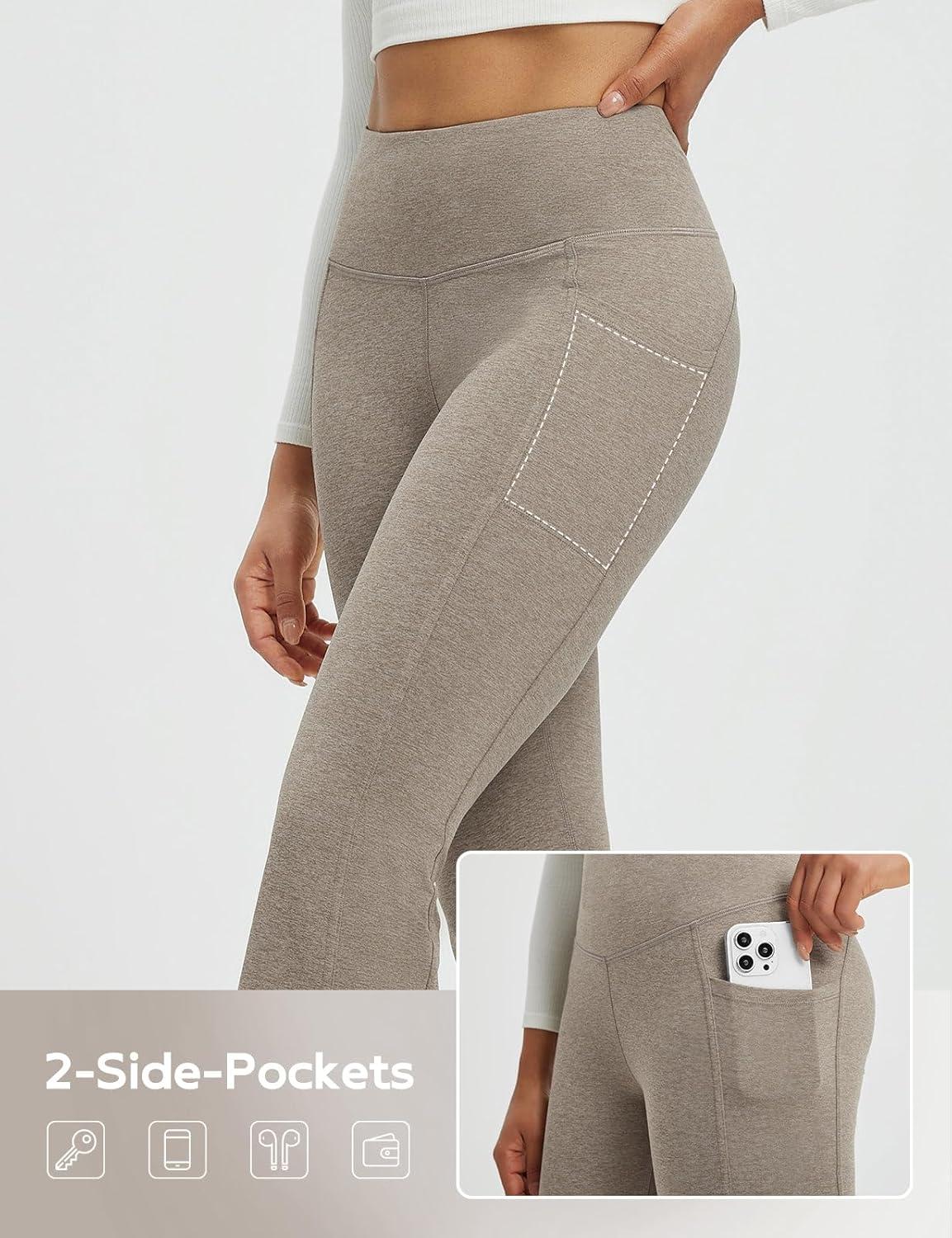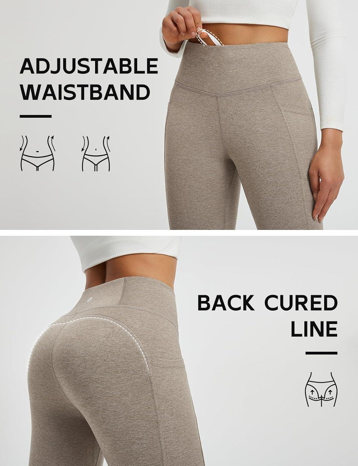 baleaf Fleece Lined Pants Women Heather Flare Leggings Thermal Warm High Waist Winter Yoga Pants with Pockets(Heather Khaki)
