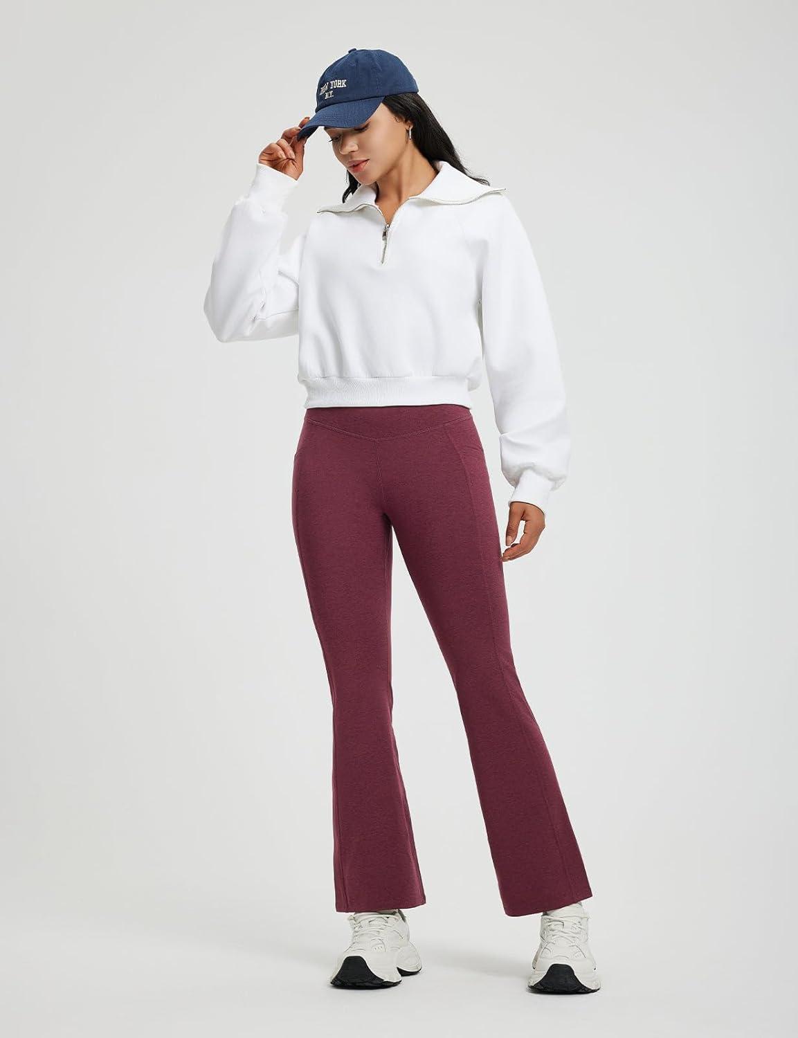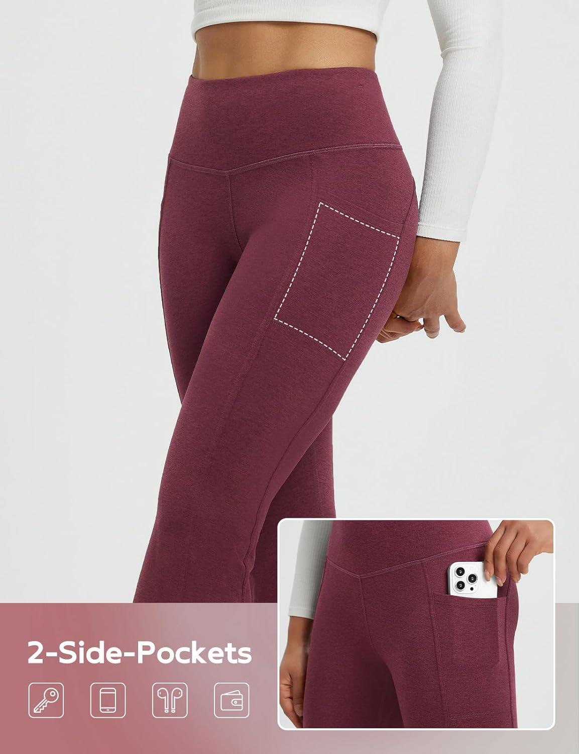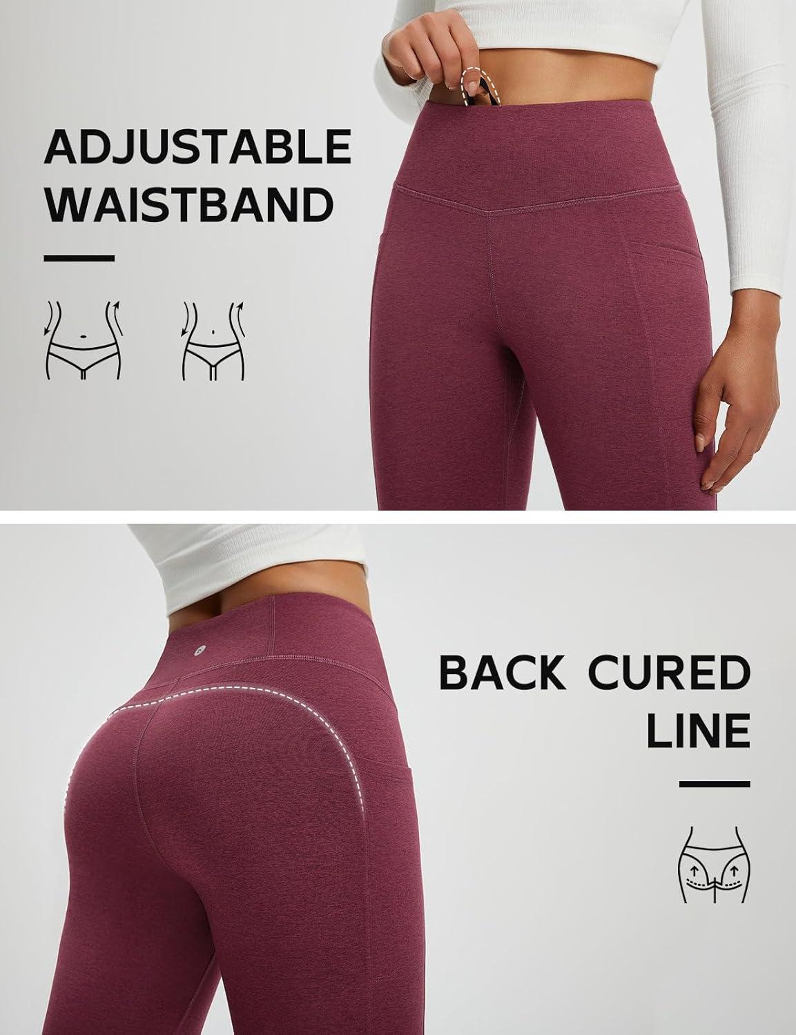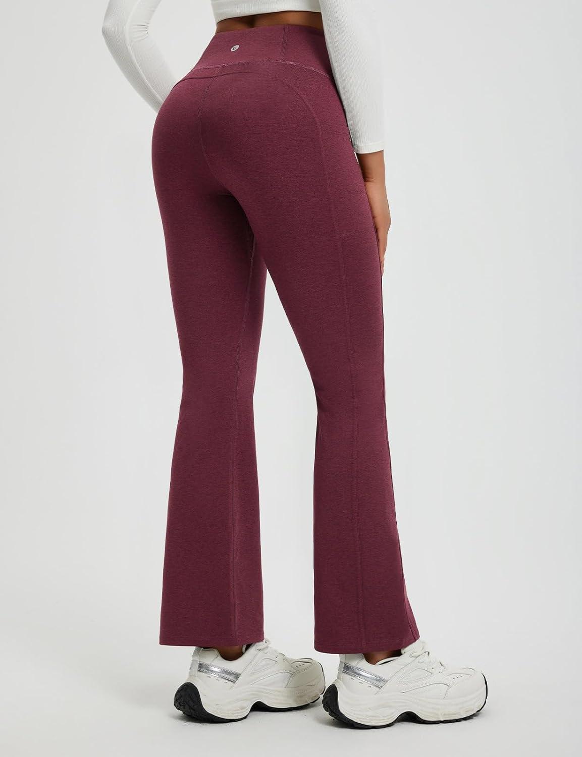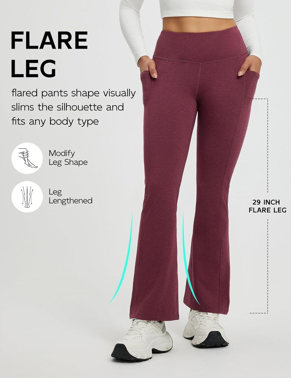 baleaf Fleece Lined Pants Women Heather Flare Leggings Thermal Warm High Waist Winter Yoga Pants with Pockets(Heather Wine Red)