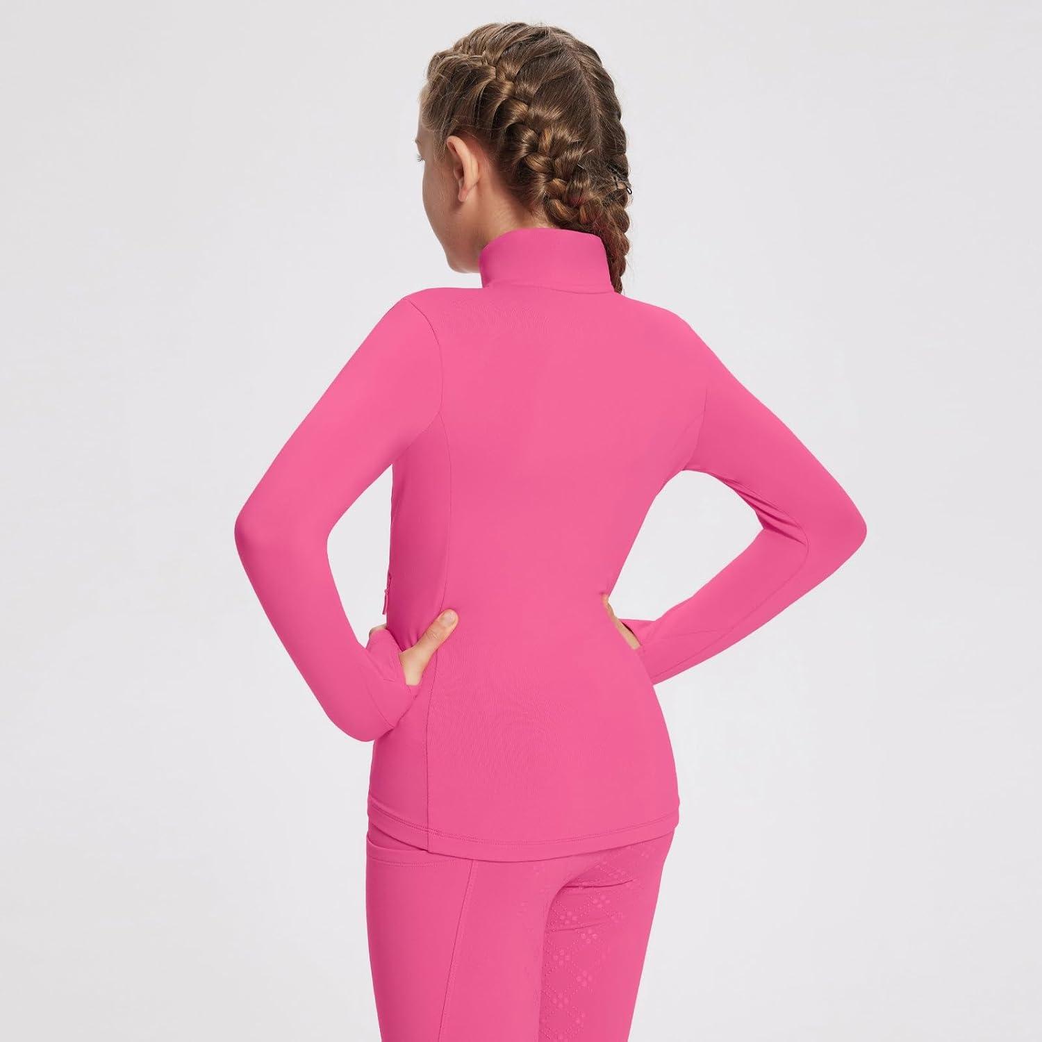 imagebaleaf Girls Long Sleeve Shirts Fleece Jacket Fall Half Zip Pullover Kids Sweatshirts Athletic Thermal CoatAoat Pink