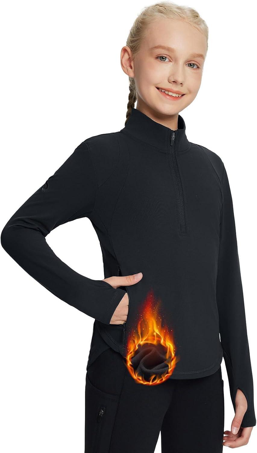 imagebaleaf Girls Long Sleeve Shirts Fleece Jacket Fall Half Zip Pullover Kids Sweatshirts Athletic Thermal CoatBblack