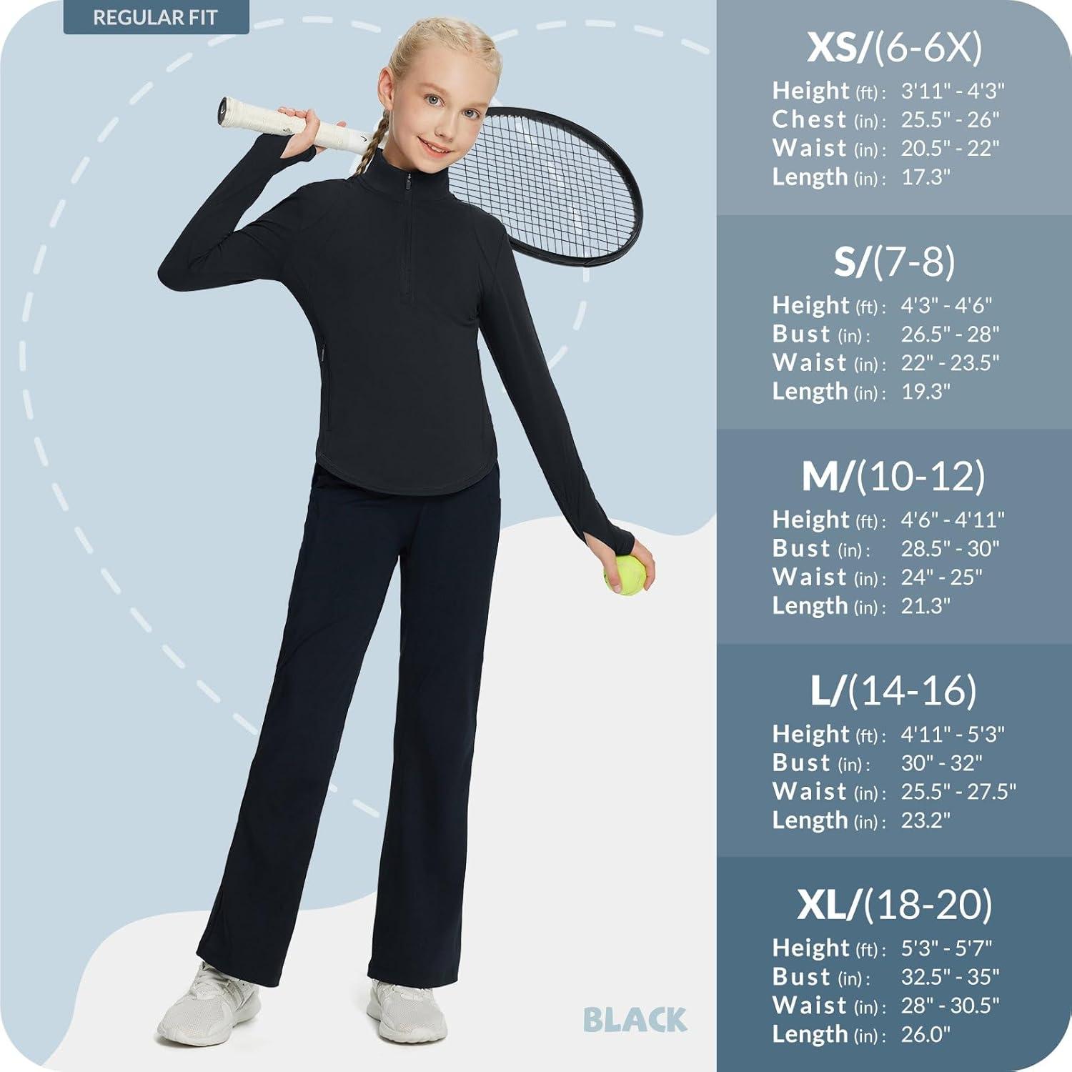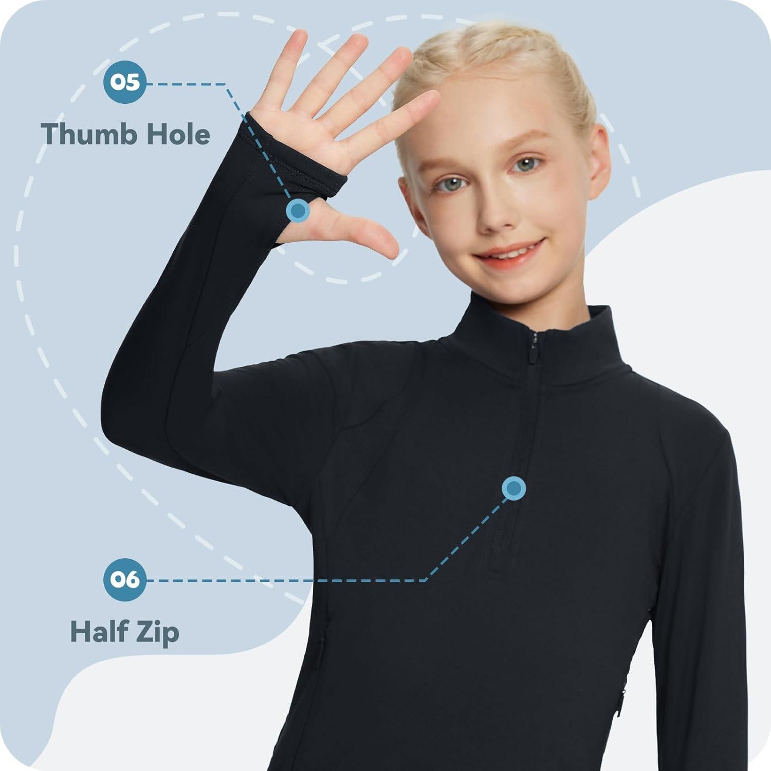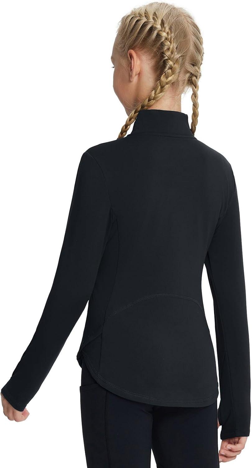 baleaf Girls Long Sleeve Shirts Fleece Jacket Fall Half Zip Pullover Kids Sweatshirts Athletic Thermal Coat(B-black)