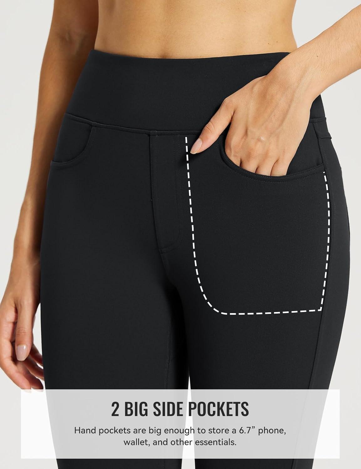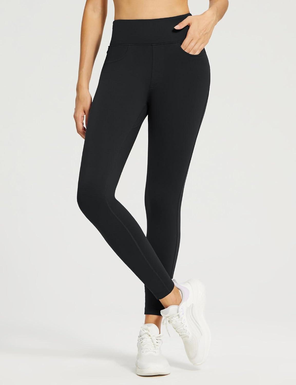 BALEAF Jeggings for Women Fleece Lined Pants Thermal Warm Winter High Waisted Leggings 4 Pockets Waterproof Running Tights