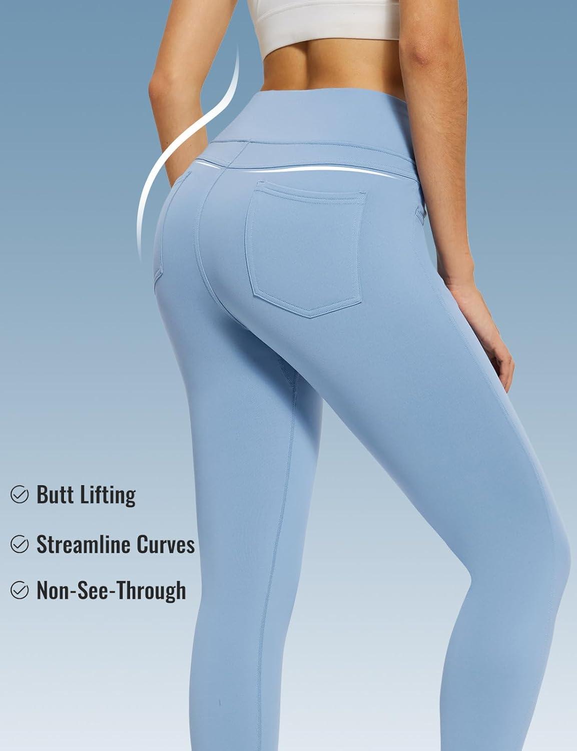 baleaf Jeggings for Women Fleece Lined Pants Thermal Warm Winter High Waisted Leggings 4 Pockets Waterproof Running Tights(04-blue)