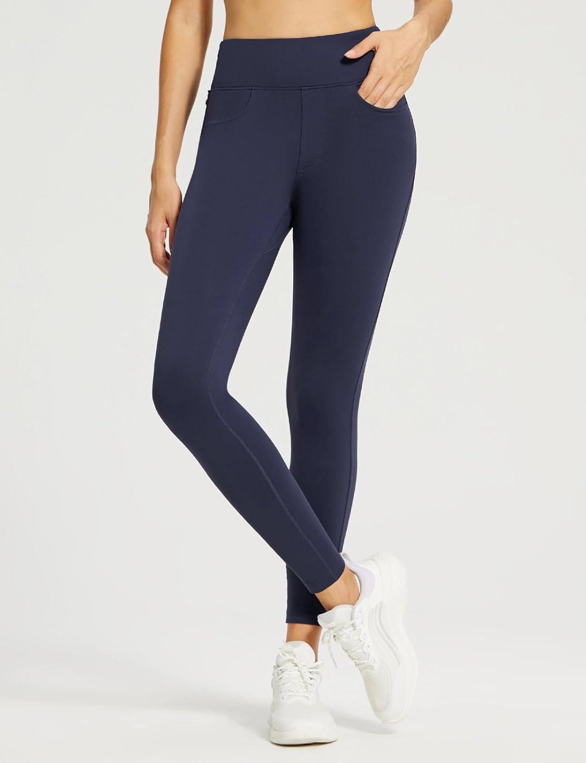 baleaf Jeggings for Women Fleece Lined Pants Thermal Warm Winter High Waisted Leggings 4 Pockets Waterproof Running Tights(04-navy)