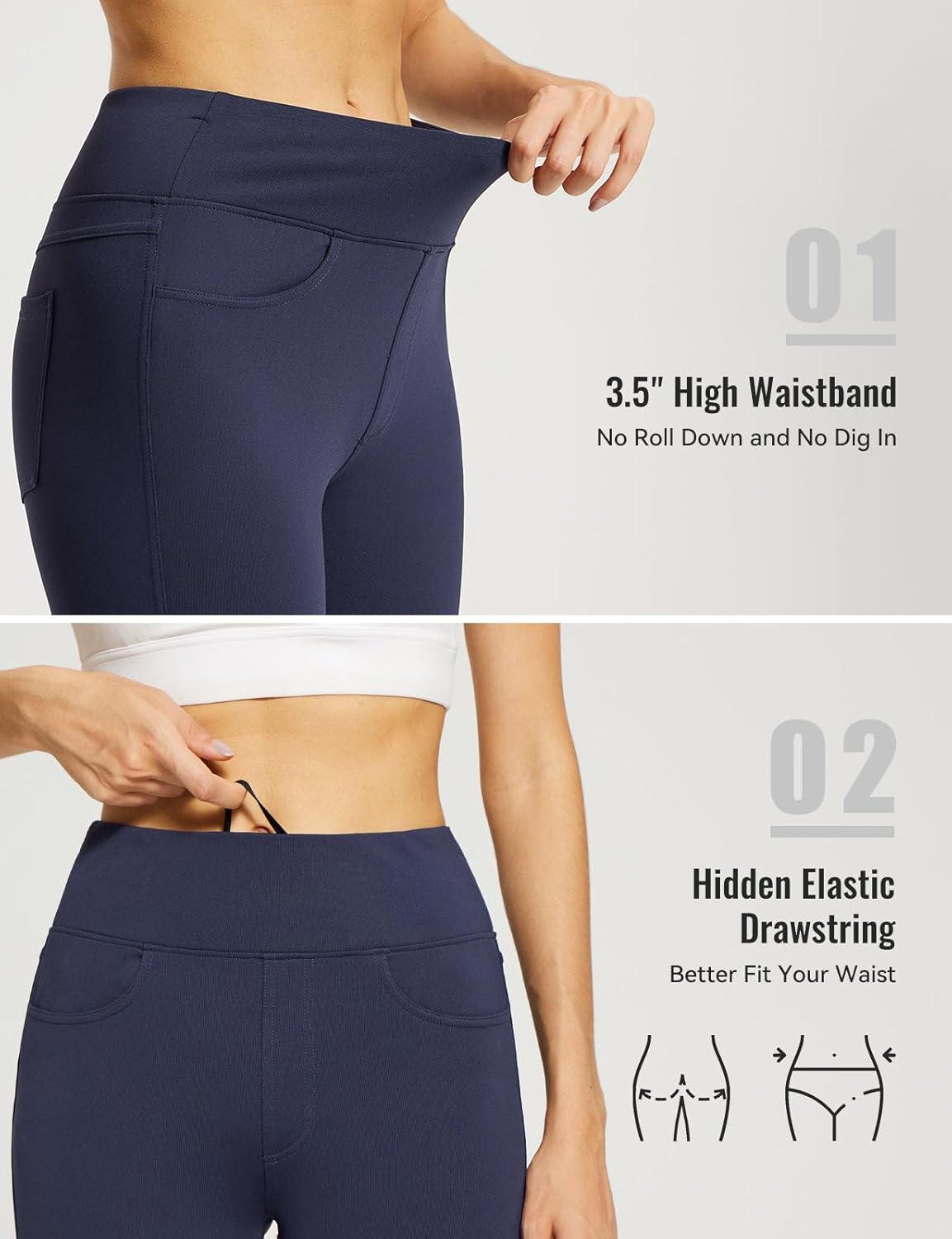 imagebaleaf Jeggings for Women Fleece Lined Pants Thermal Warm Winter High Waisted Leggings 4 Pockets Waterproof Running Tights04navy