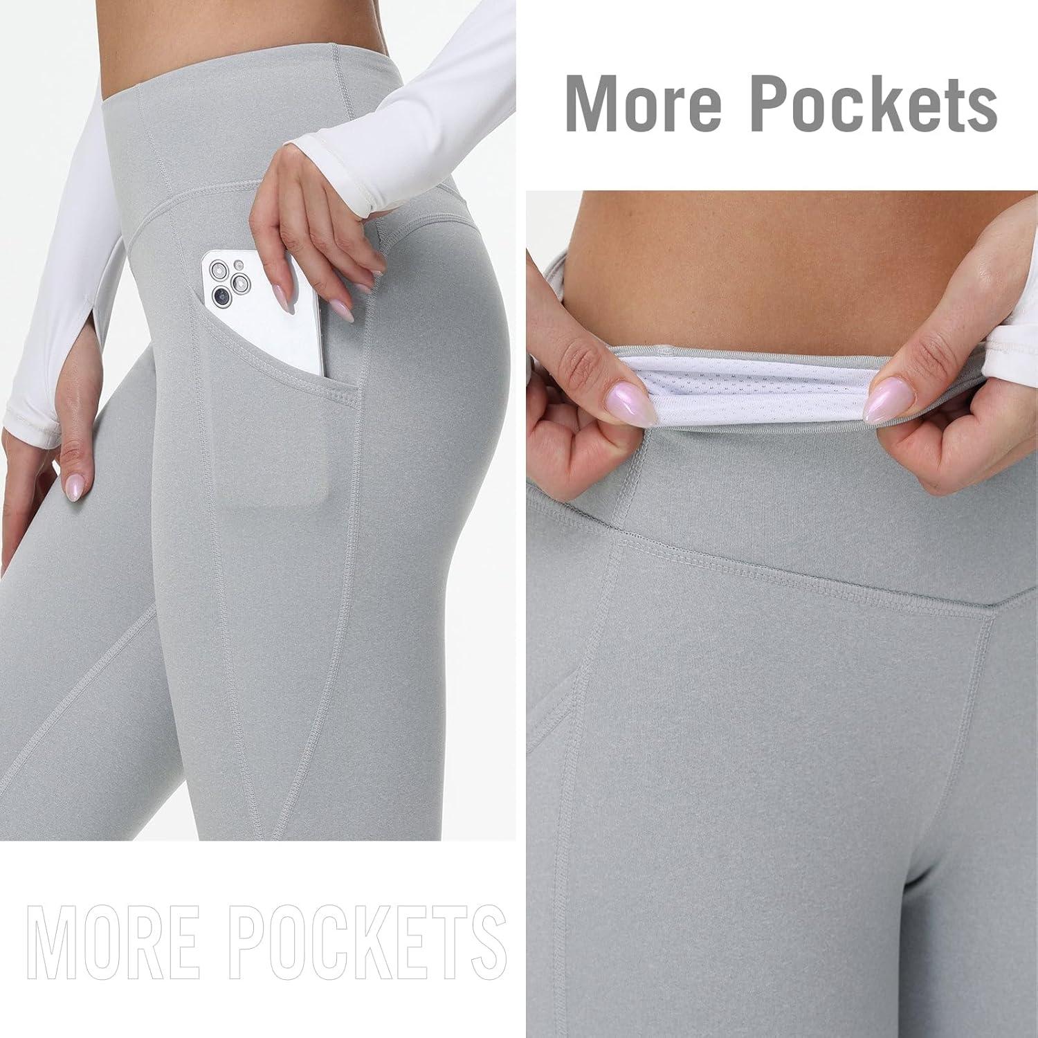 imagebaleaf Leggings for Women Fleece Lined Tights Thermal Warm Winter High Waisted Thick Yoga Pants Cold Weather Inner PocketLight Heather Gray