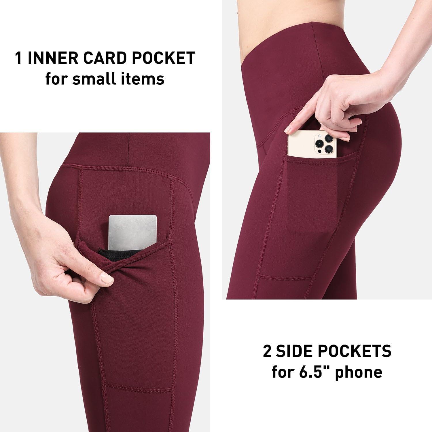 imagebaleaf Leggings for Women Fleece Lined Tights Thermal Warm Winter High Waisted Thick Yoga Pants Cold Weather Inner PocketWine Red