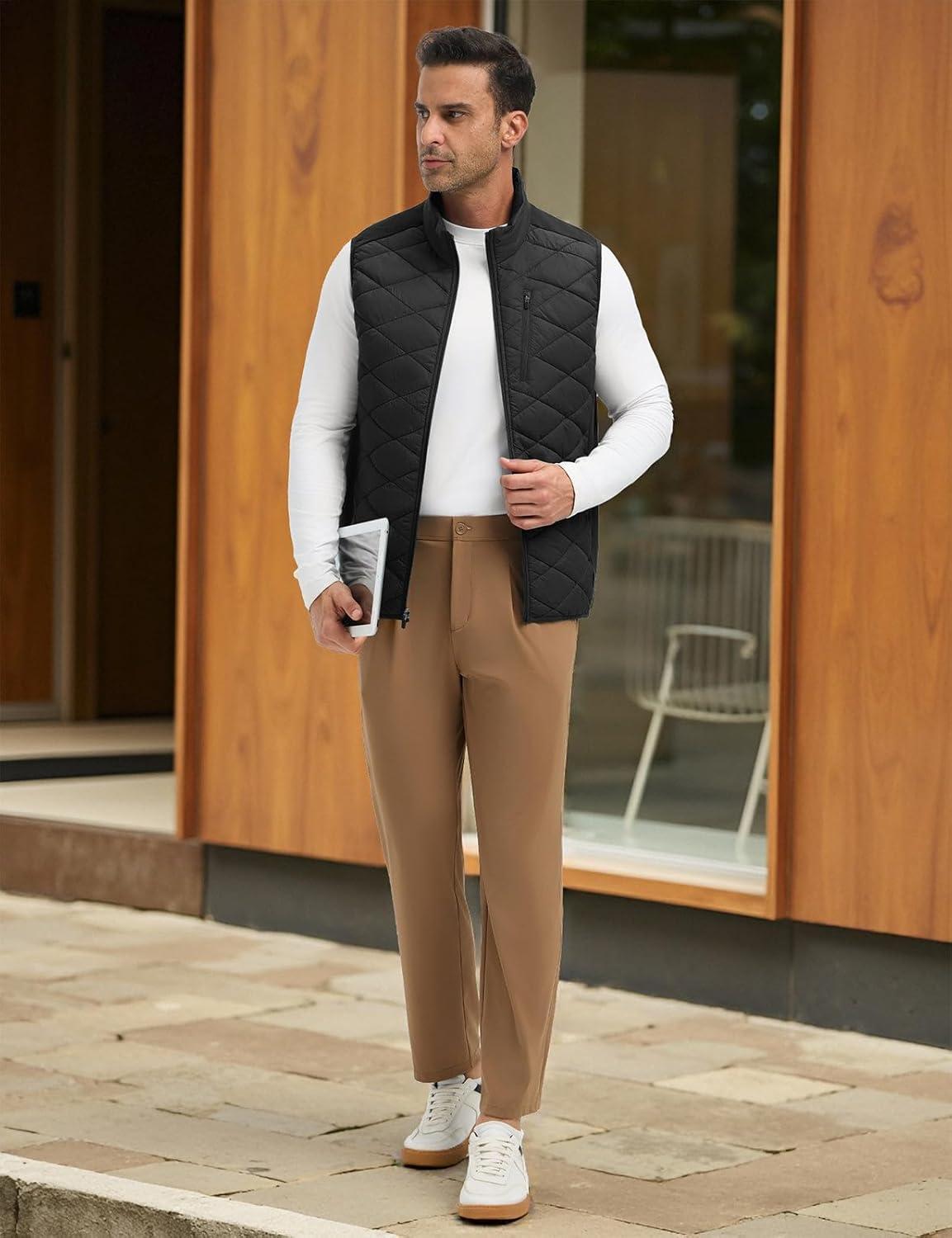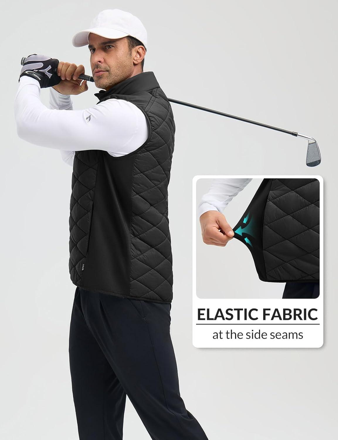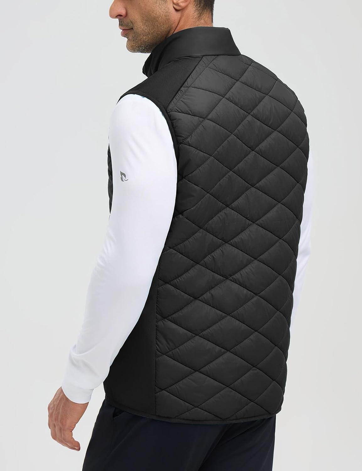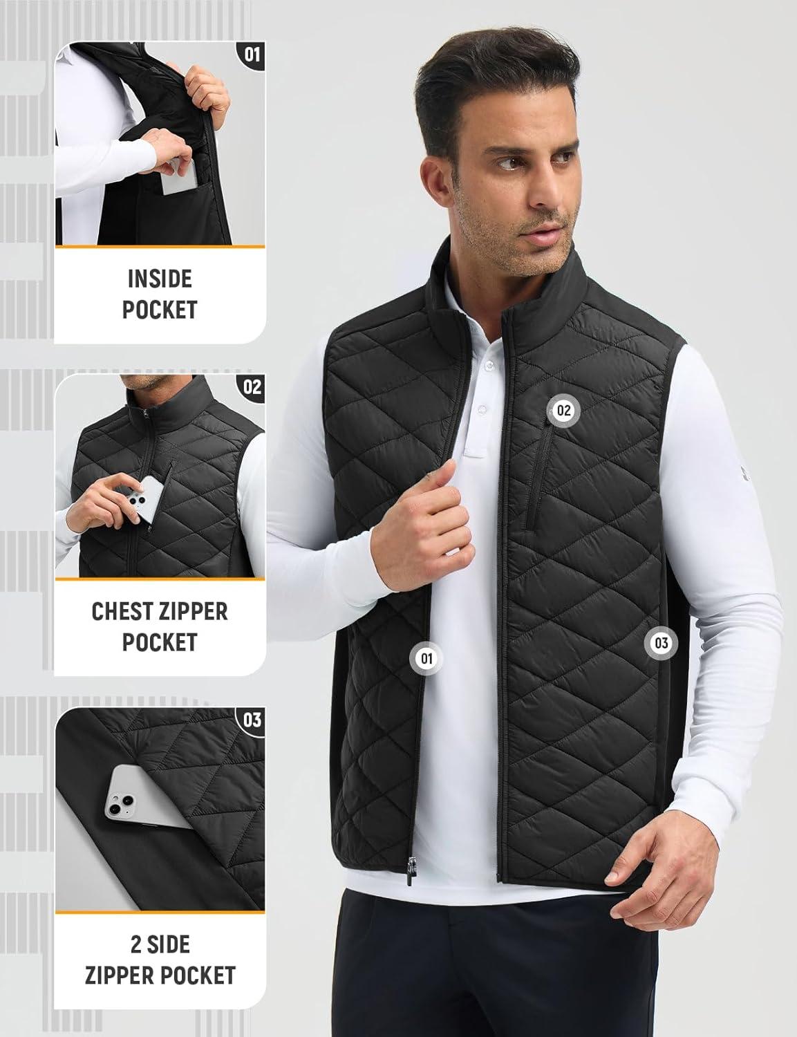 imagebaleaf Mens Puffer Vest Outerwear Golf Sleeveless Jacket Winter Warm Lightweight Pockets WindproofBlack