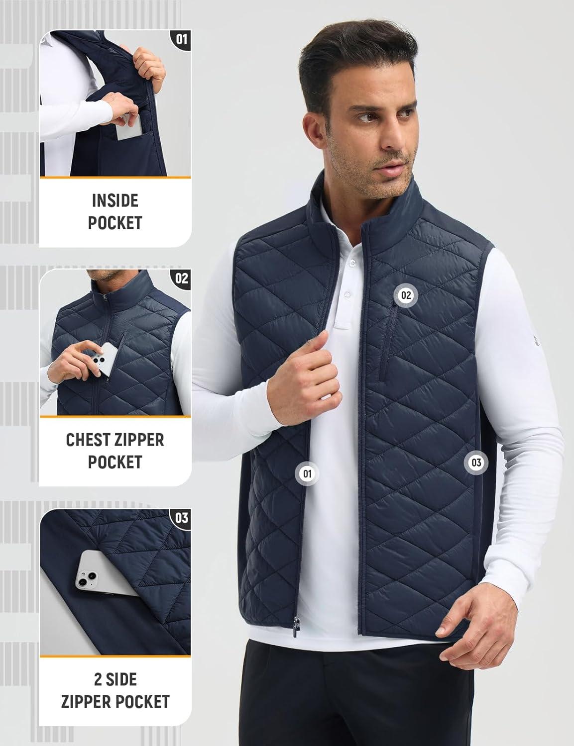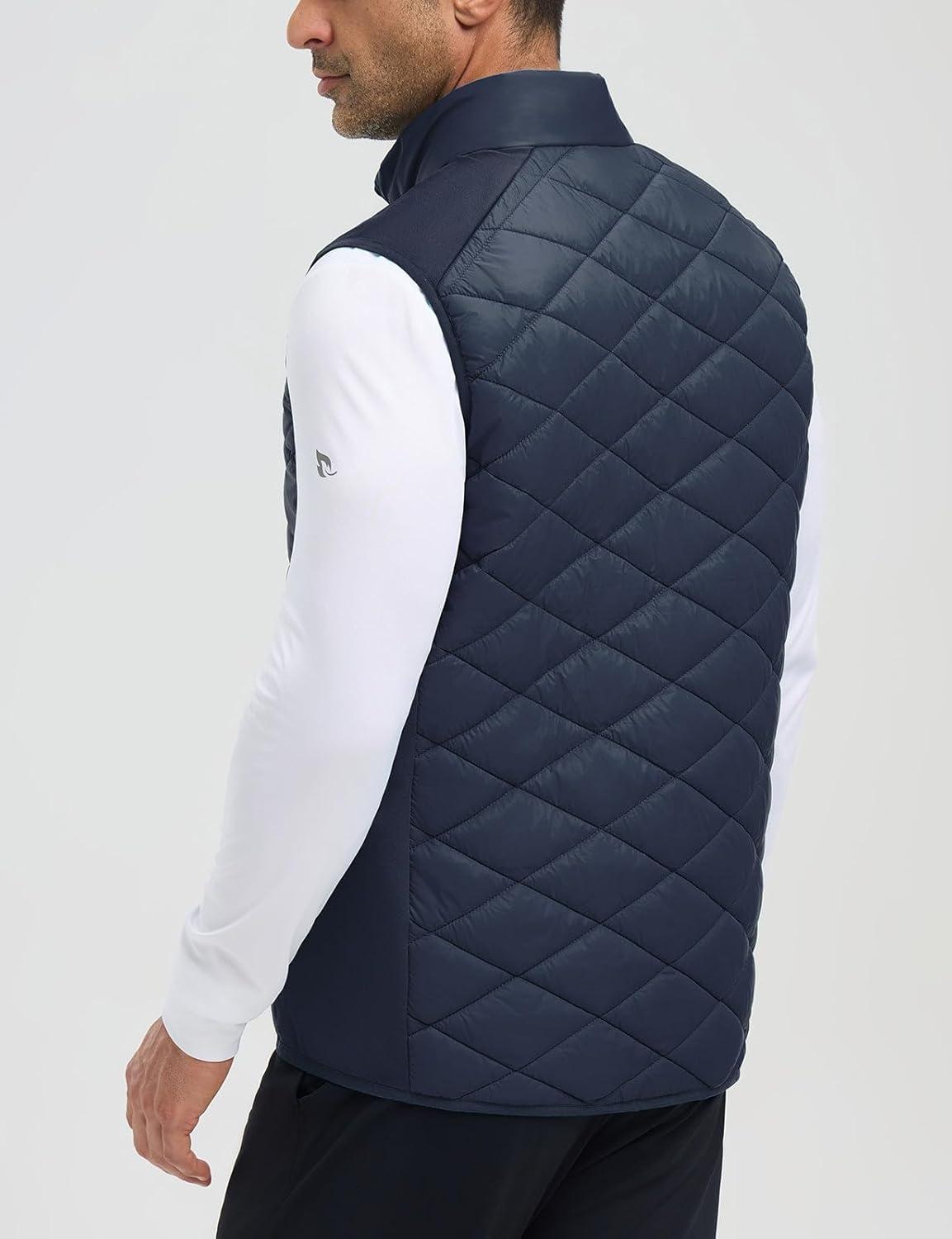 imagebaleaf Mens Puffer Vest Outerwear Golf Sleeveless Jacket Winter Warm Lightweight Pockets WindproofNavy Blue