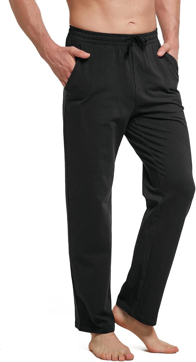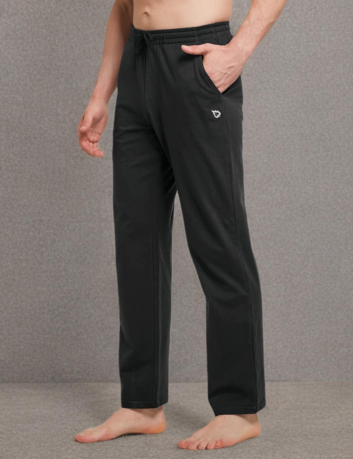 baleaf Men's Sweatpants Yoga Lounge Cotton Pajama Pants Casual Open Bottom Straight Leg Stretchy Sweat Pants with Pockets(A-black)