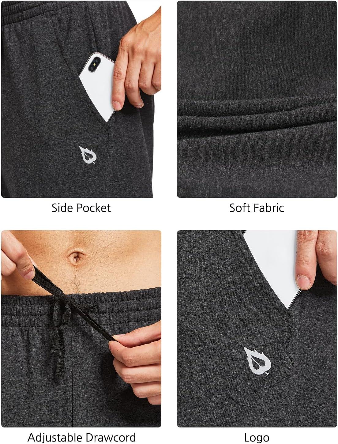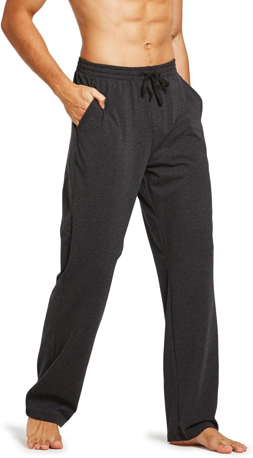 baleaf Men’s Sweatpants Yoga Lounge Cotton Pajama Pants Casual Open Bottom Straight Leg Stretchy Sweat Pants with Pockets(A-charcoal)