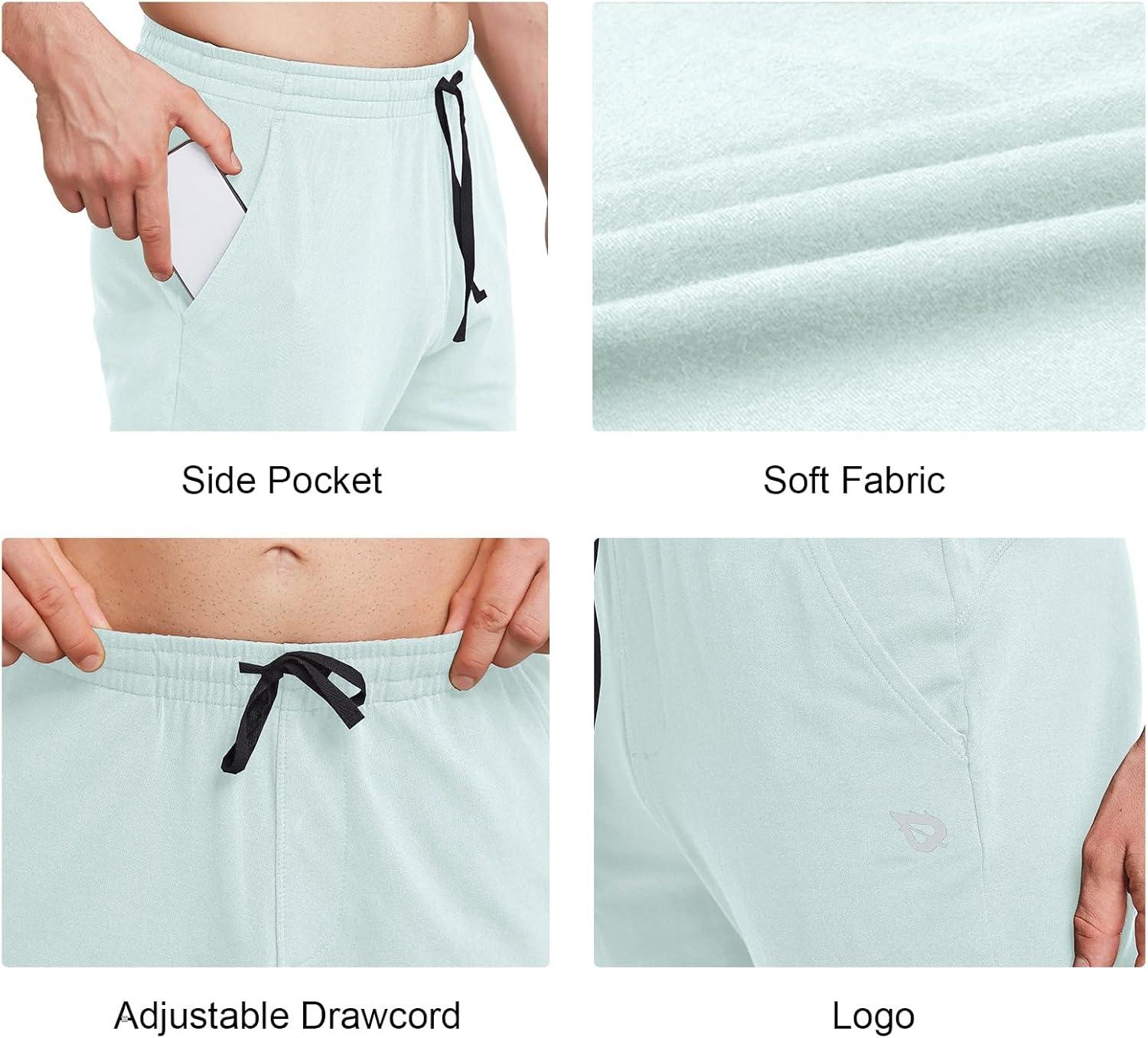 baleaf Men’s Sweatpants Yoga Lounge Cotton Pajama Pants Casual Open Bottom Straight Leg Stretchy Sweat Pants with Pockets(A-light Blue)