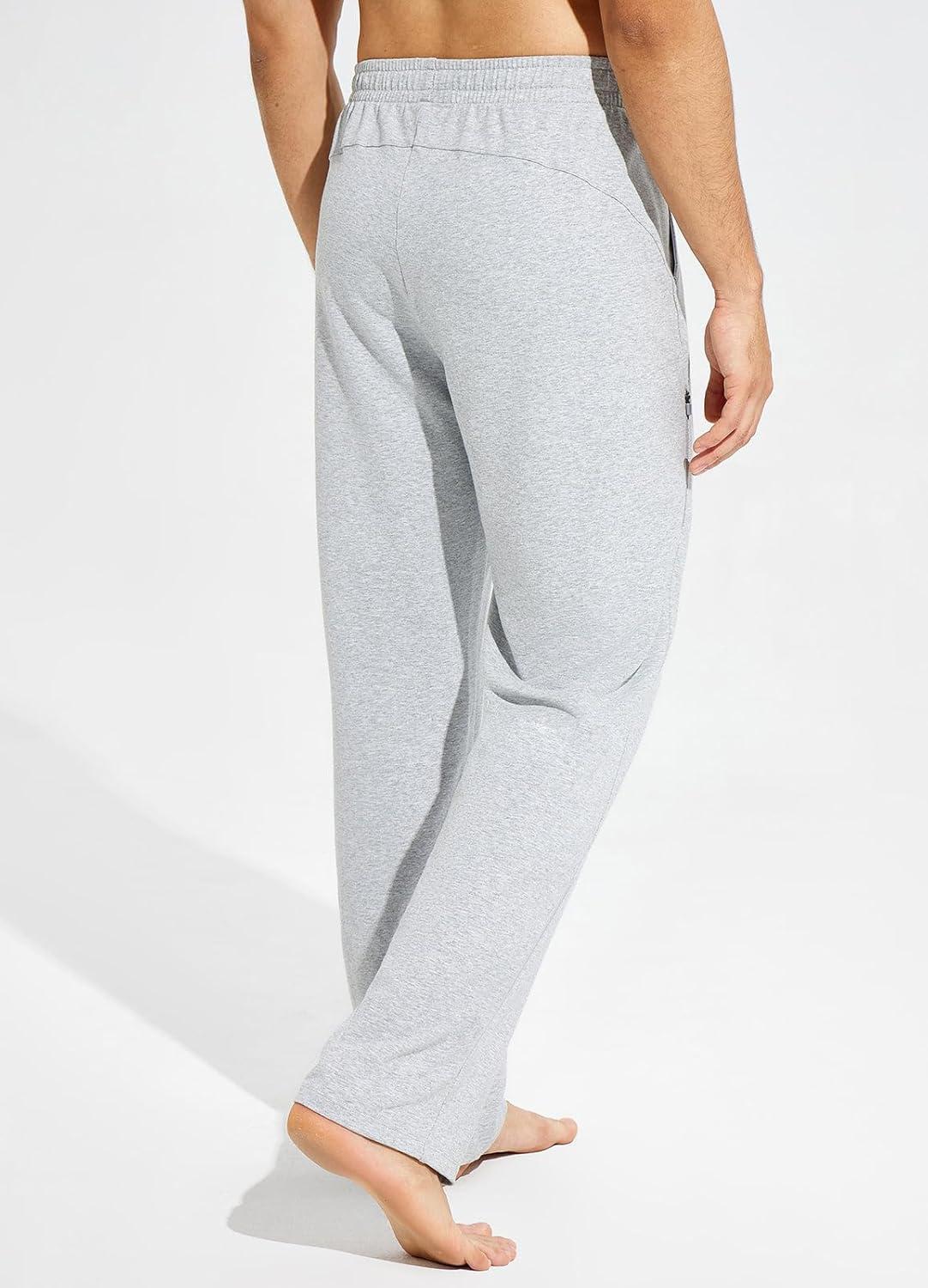 baleaf Men's Sweatpants Yoga Lounge Cotton Pajama Pants Casual Open Bottom Straight Leg Stretchy Sweat Pants with Pockets(B-light Gray-zipper Pocket)