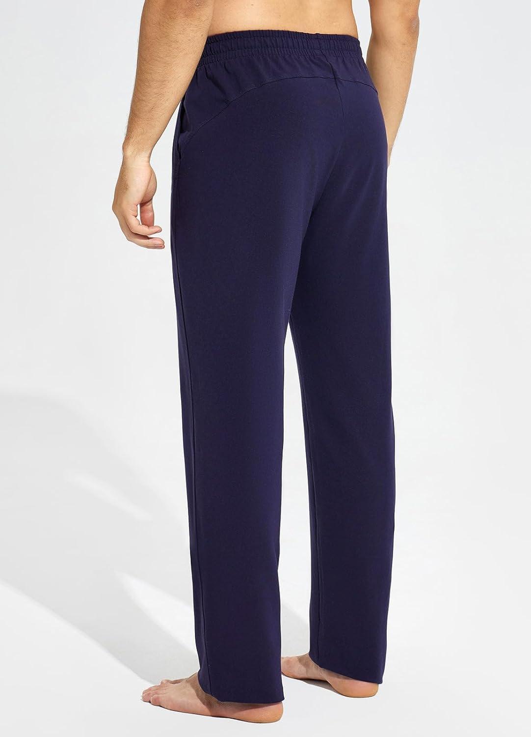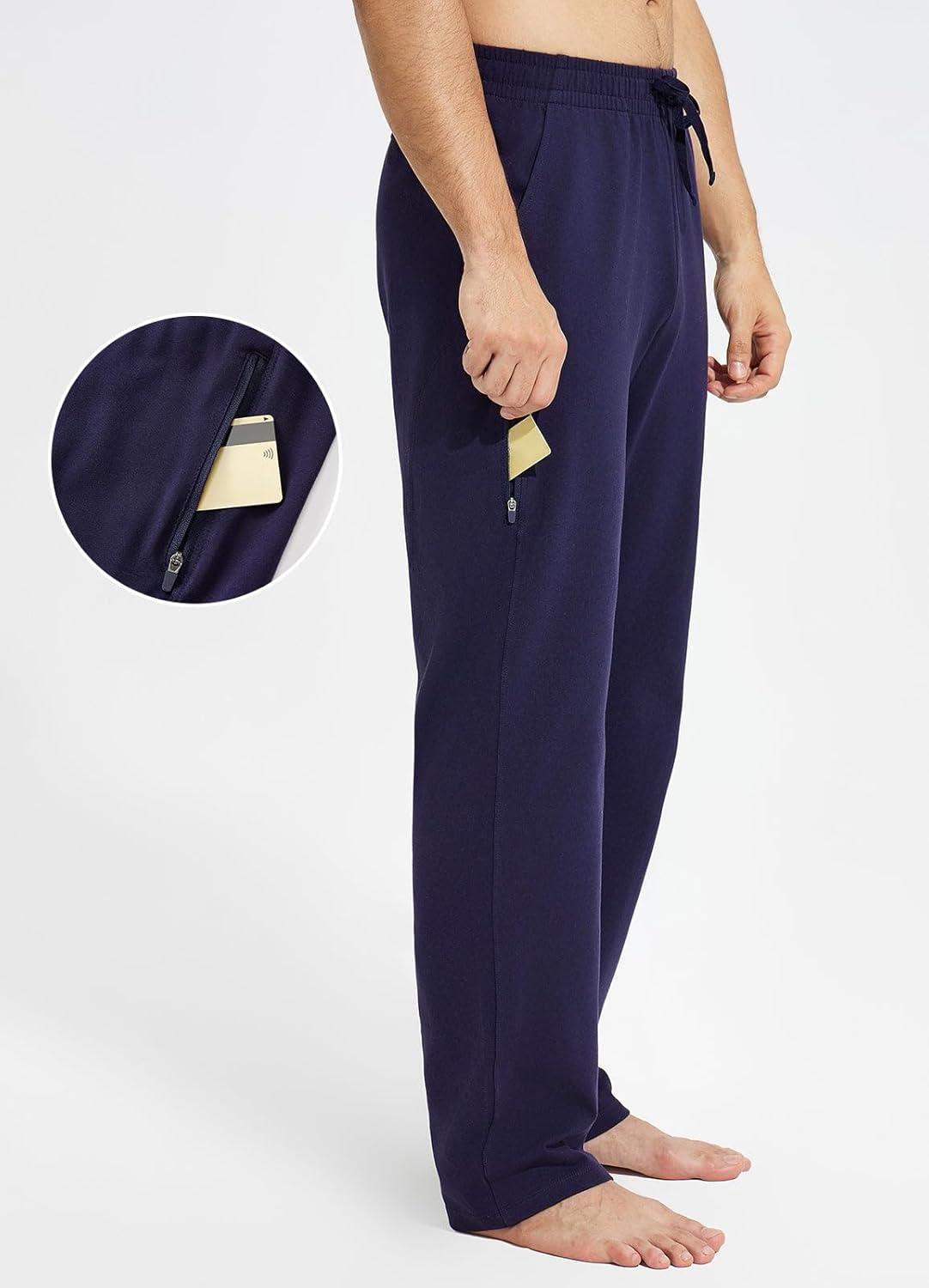 baleaf Men's Sweatpants Yoga Lounge Cotton Pajama Pants Casual Open Bottom Straight Leg Stretchy Sweat Pants with Pockets(B-navy Blue-zipper Pocket)