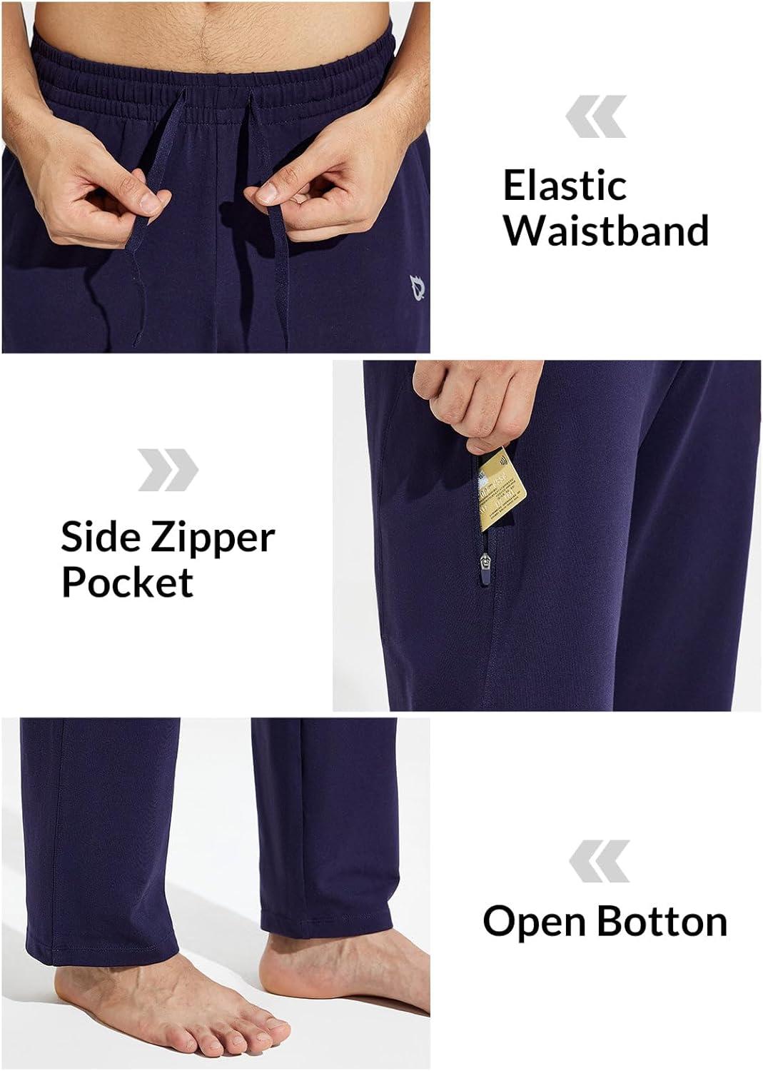 baleaf Men’s Sweatpants Yoga Lounge Cotton Pajama Pants Casual Open Bottom Straight Leg Stretchy Sweat Pants with Pockets(B-navy Blue-zipper Pocket)