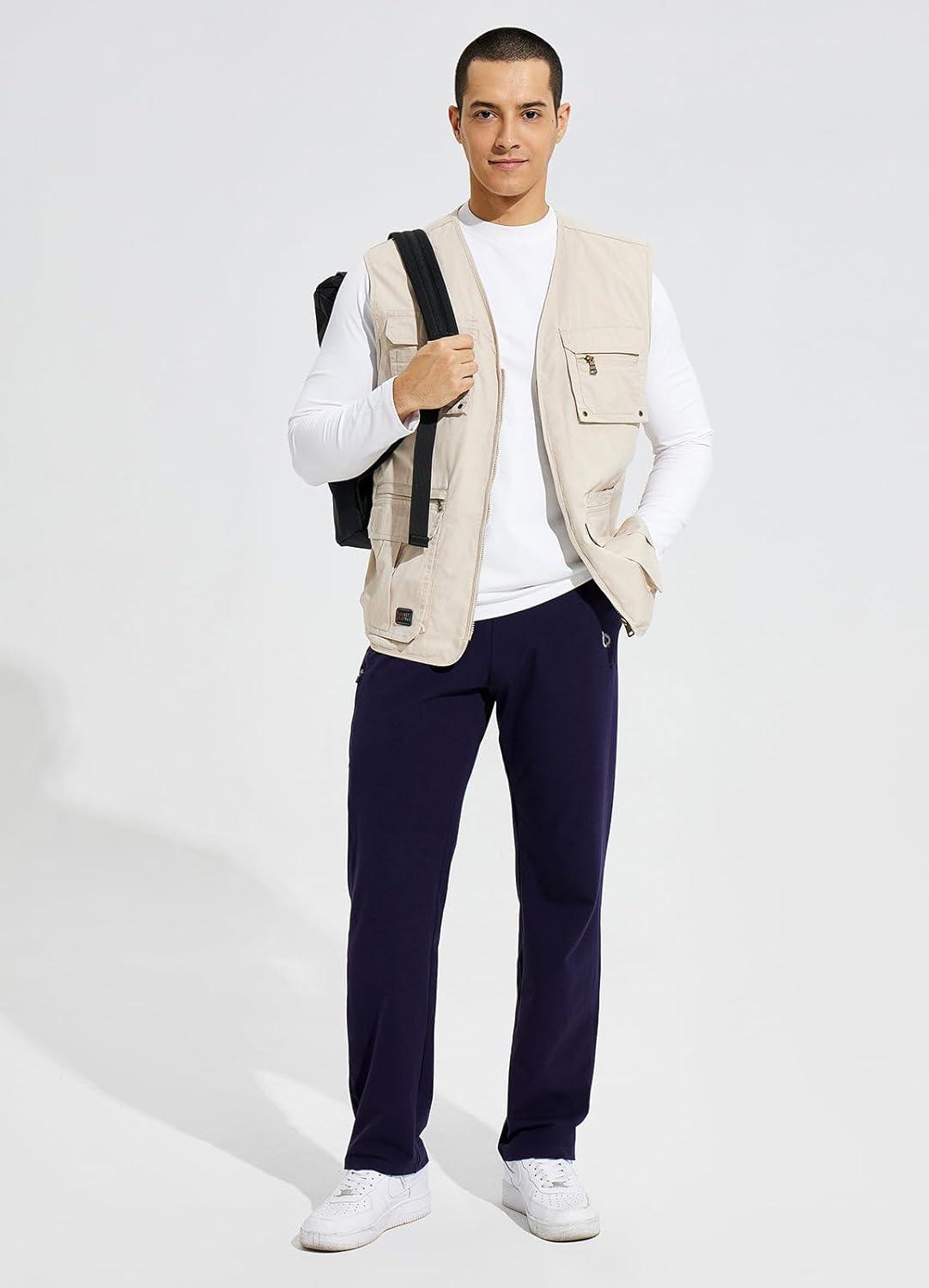 imagebaleaf Mens Sweatpants Yoga Lounge Cotton Pajama Pants Casual Open Bottom Straight Leg Stretchy Sweat Pants with PocketsBnavy Bluezipper Pocket