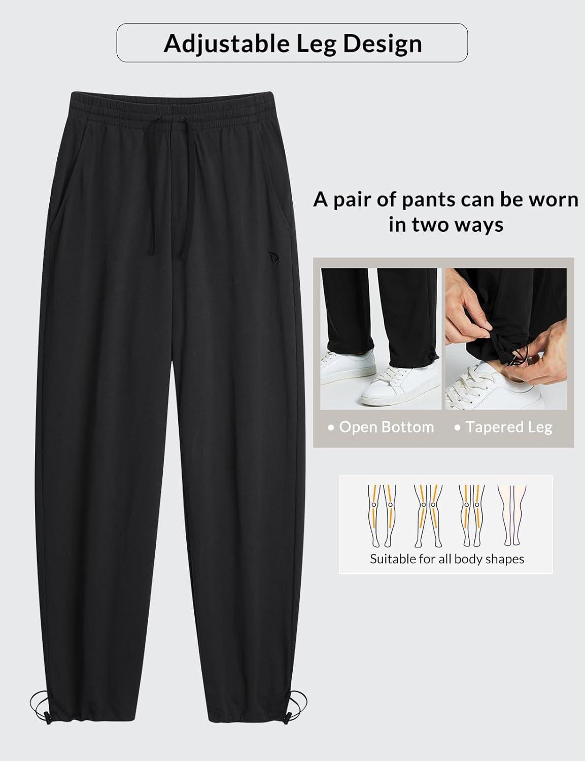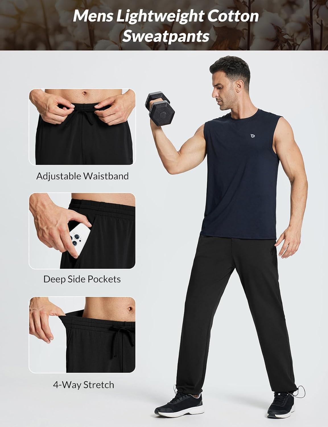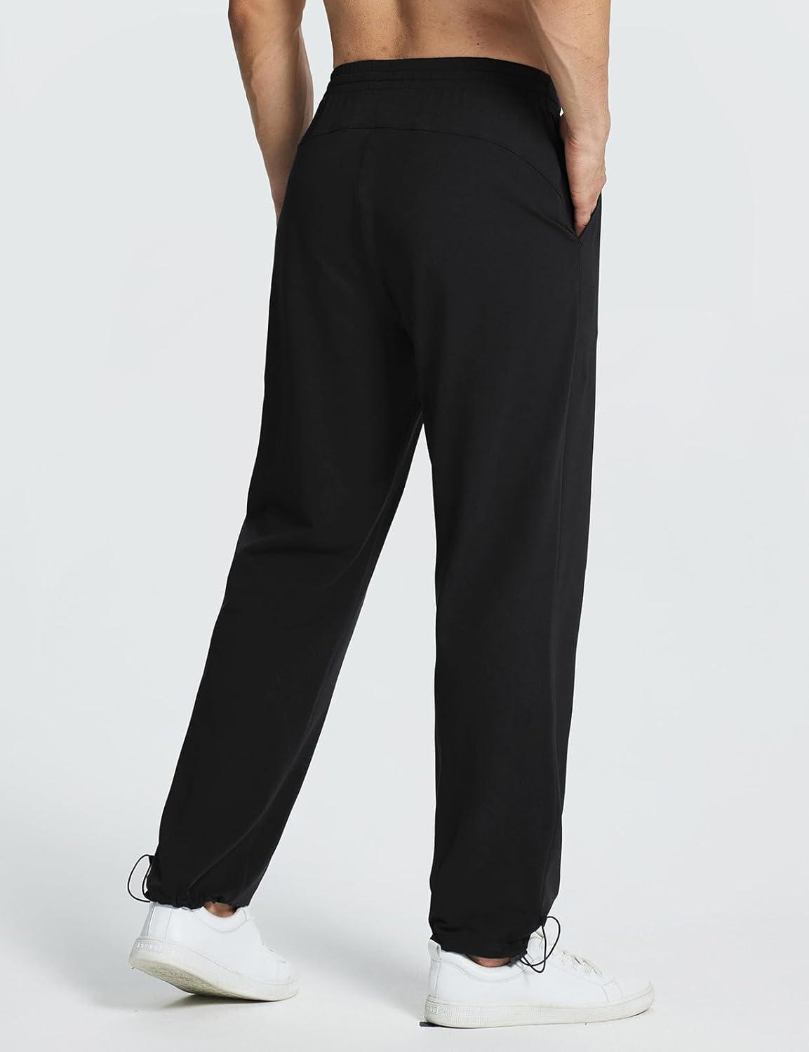 baleaf Men’s Sweatpants Yoga Lounge Cotton Pajama Pants Casual Open Bottom Straight Leg Stretchy Sweat Pants with Pockets(C-black-adjust Cinch)