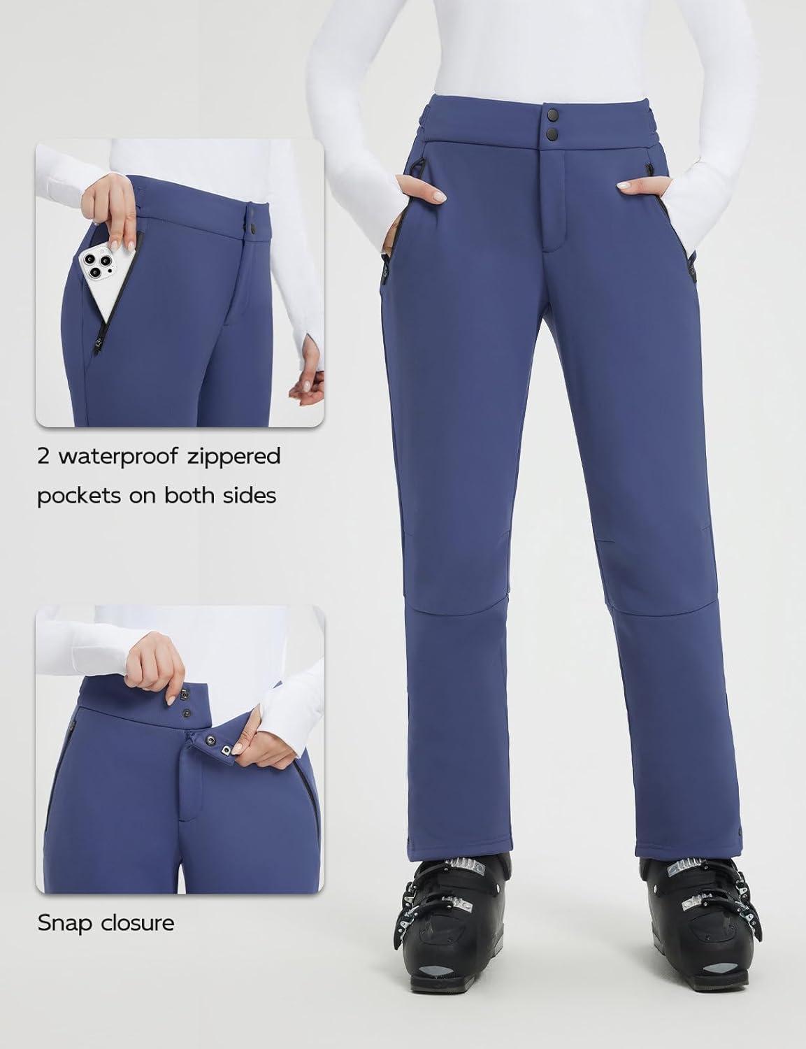 imagebaleaf Snow Pants Womens Fleece Lined Water Resistant Insulated Softshell Winter Ski Pants with Pockets Snowboarding HikingNavy Blue