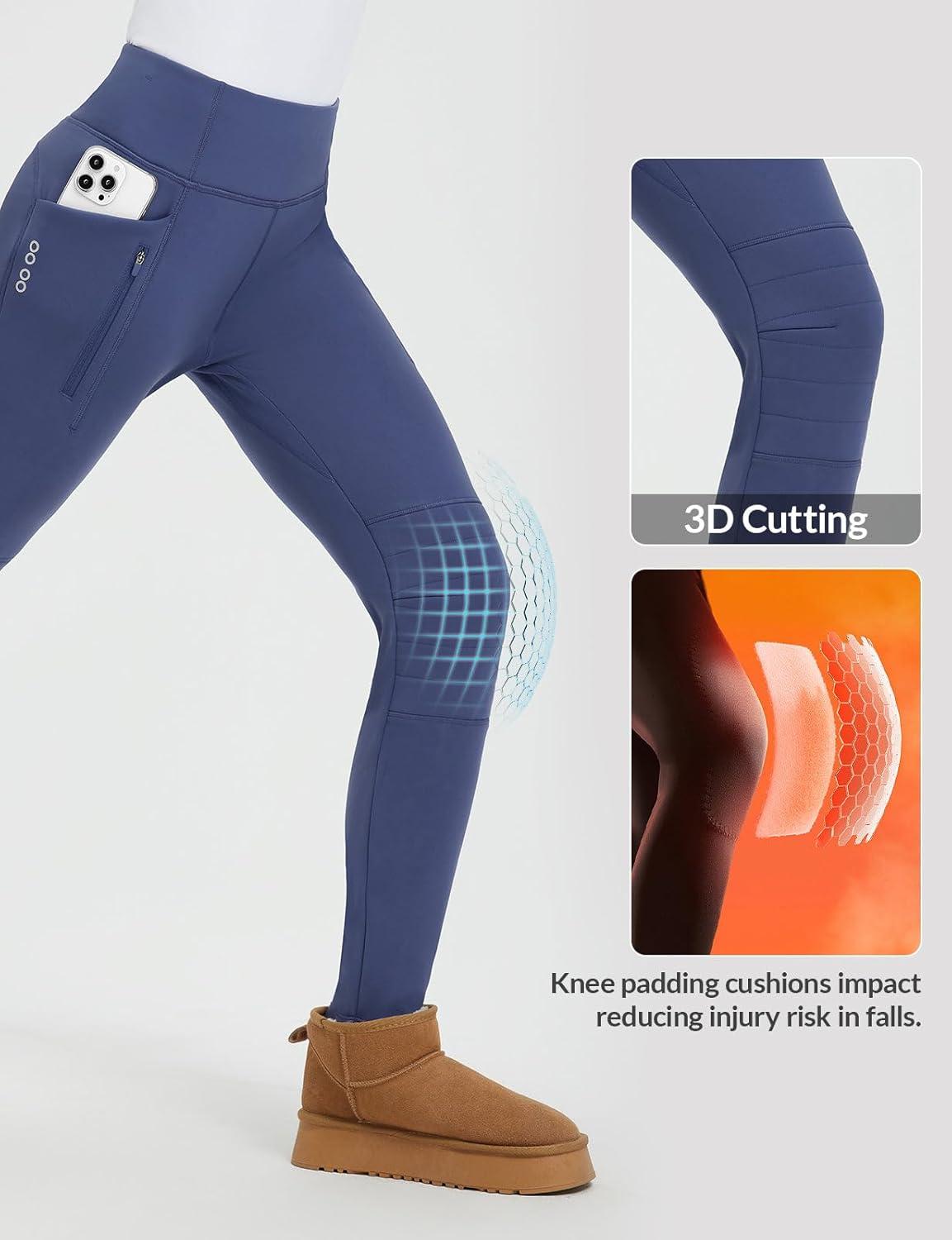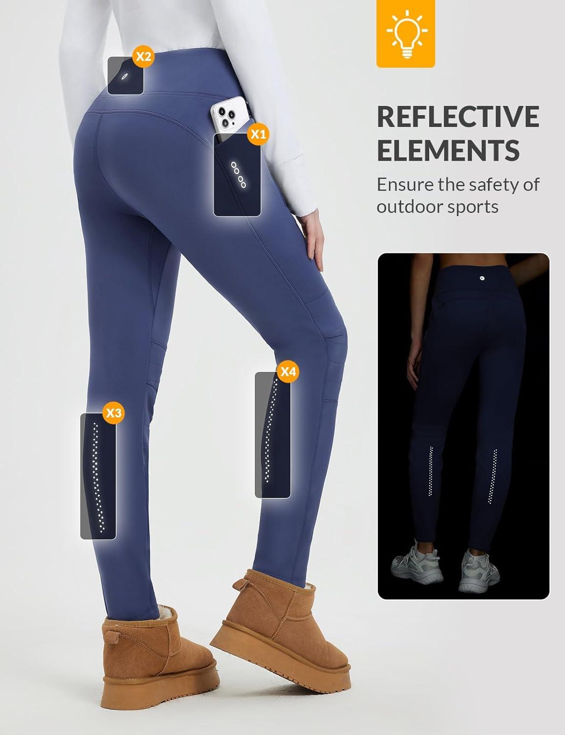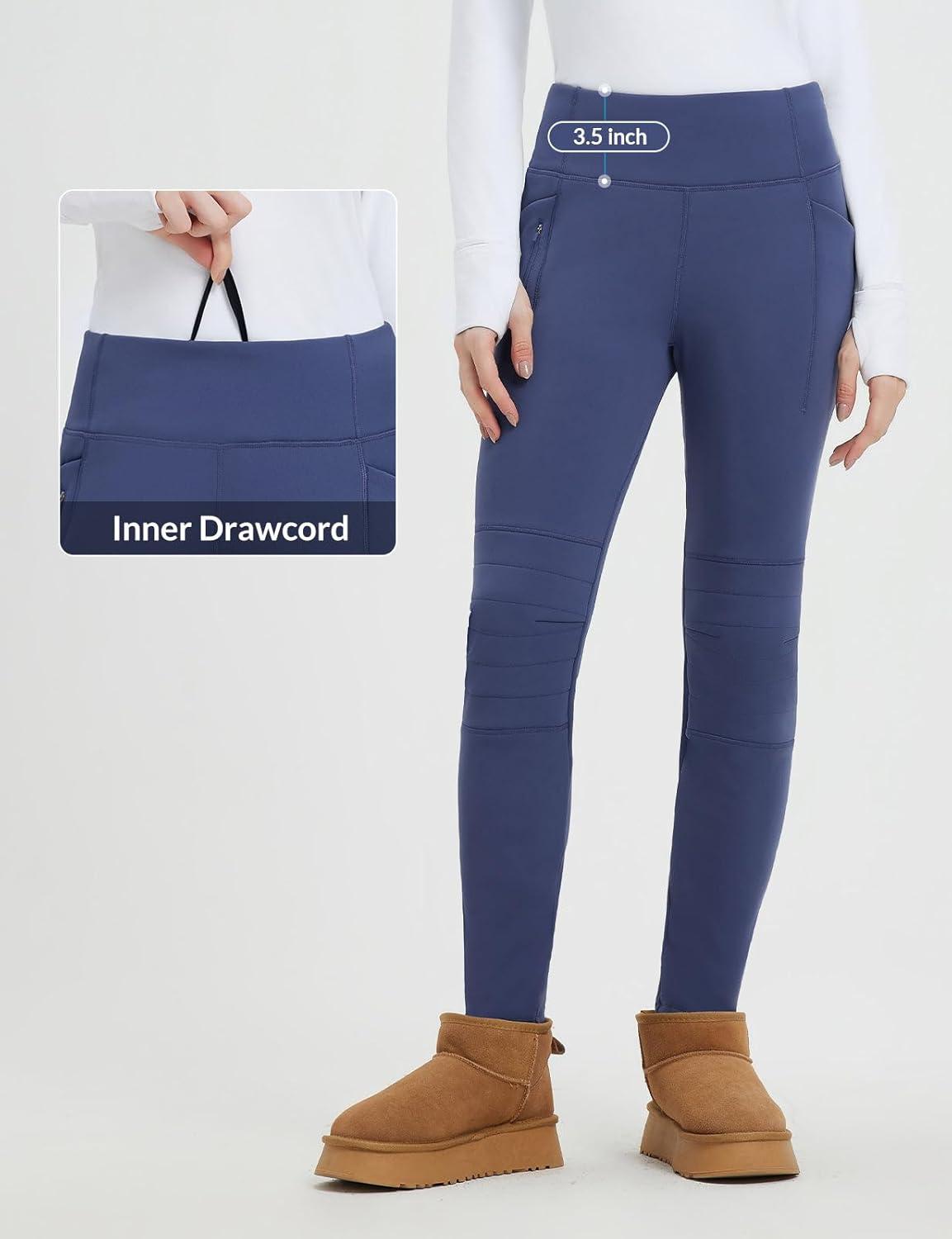 baleaf Thick Leggings for Women Water Resistant Snow Pants Fleece Lined Leggings Winter Ski Hiking Pants with Zip Pockets(Navy Blue)