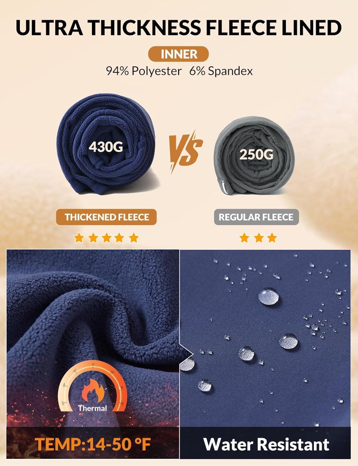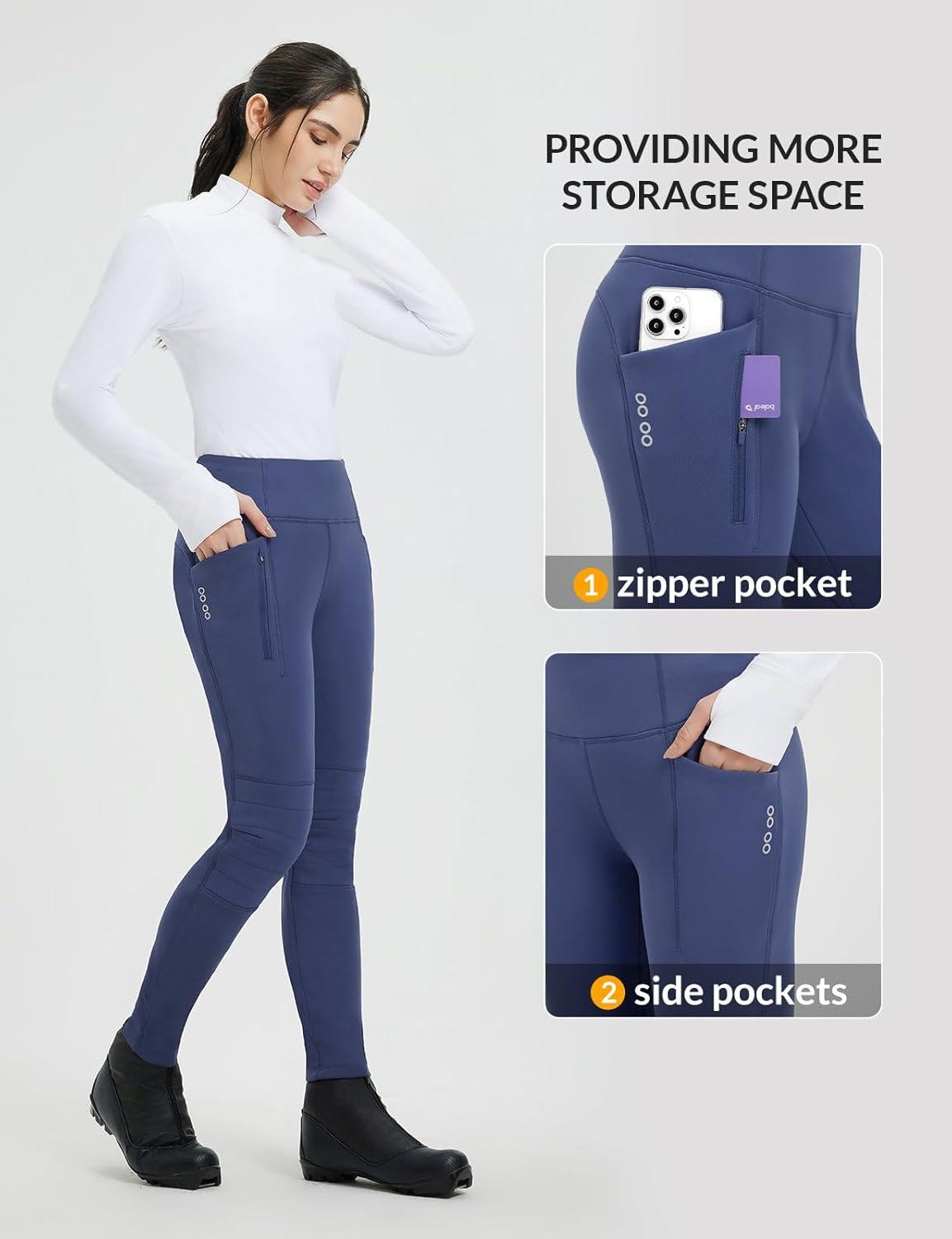 imagebaleaf Thick Leggings for Women Water Resistant Snow Pants Fleece Lined Leggings Winter Ski Hiking Pants with Zip PocketsNavy Blue