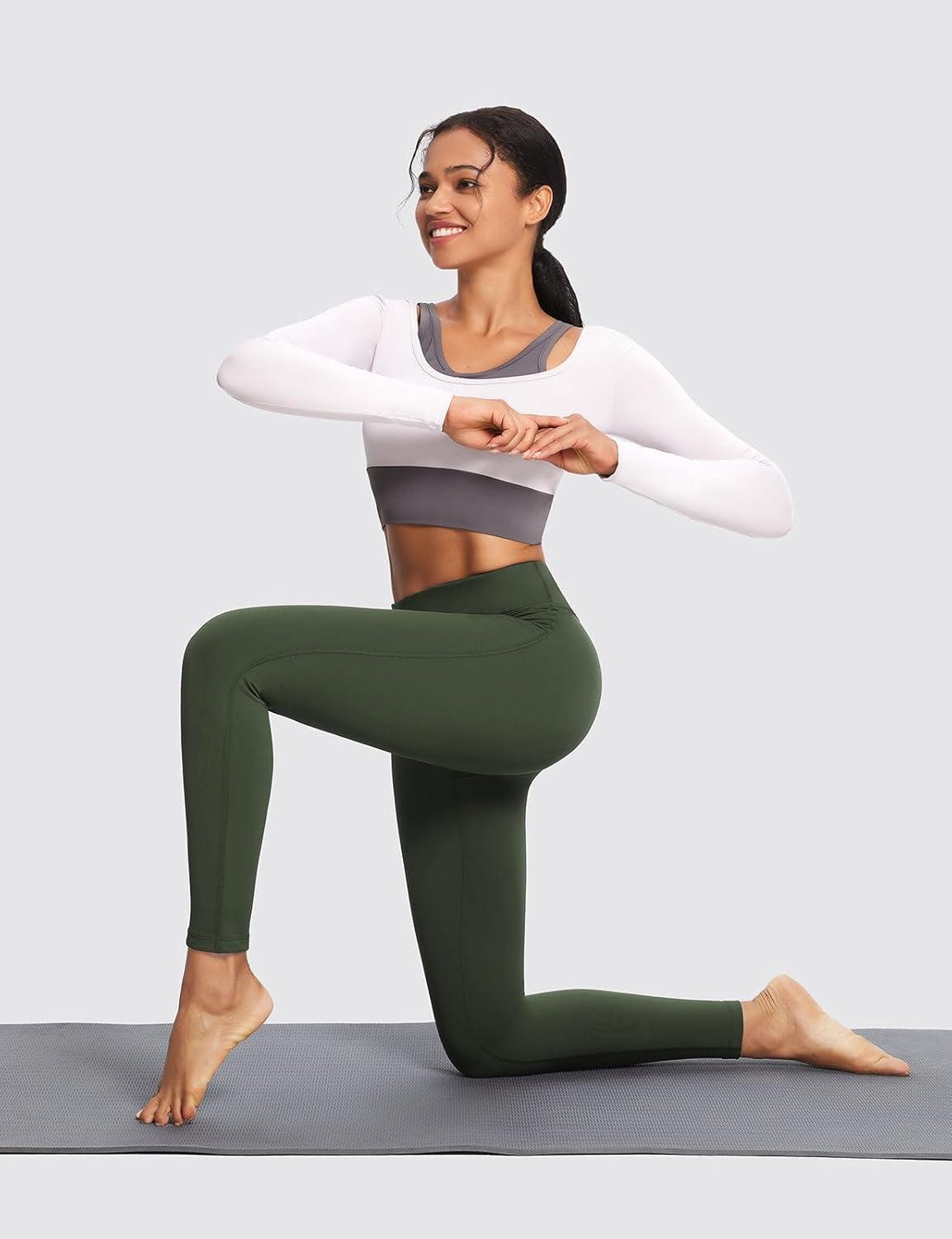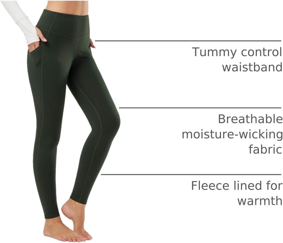 imagebaleaf Winter Clothing for Women Leggings Fleece Lined Tights Thermal Warm Thick Yoga Pants Cold Weather GearArmy Green