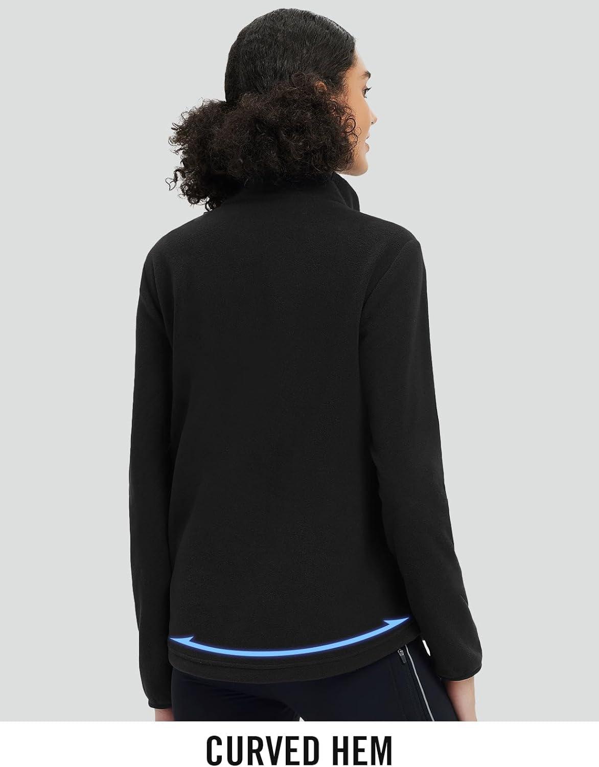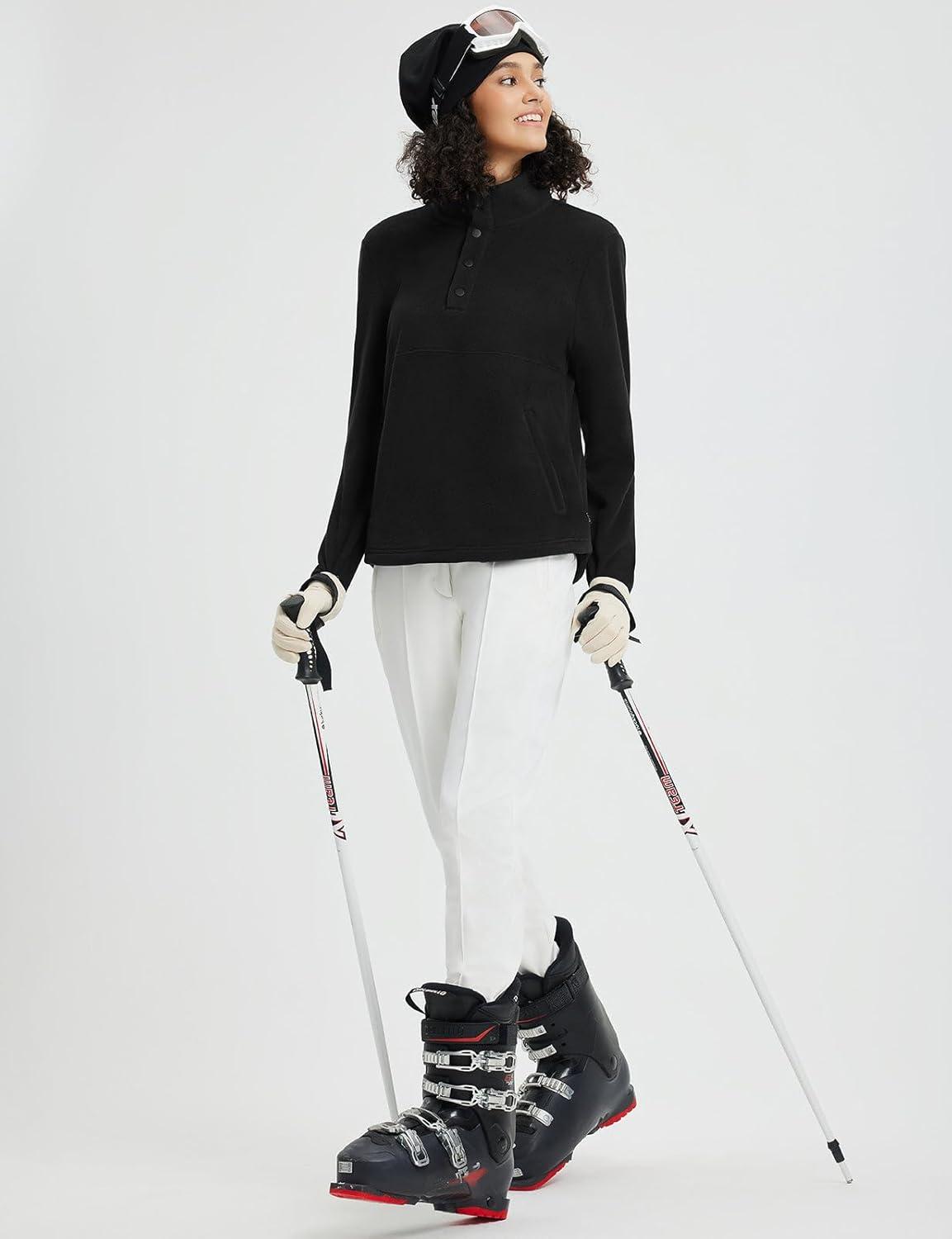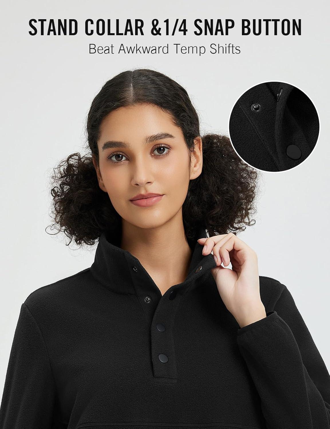 baleaf Women's 1/4 Buttom Down Fleece Pullover Thermal Long Sleeve Shirts Ski Mid Layer with Pockets Thumbhole Warm Tops(Black)