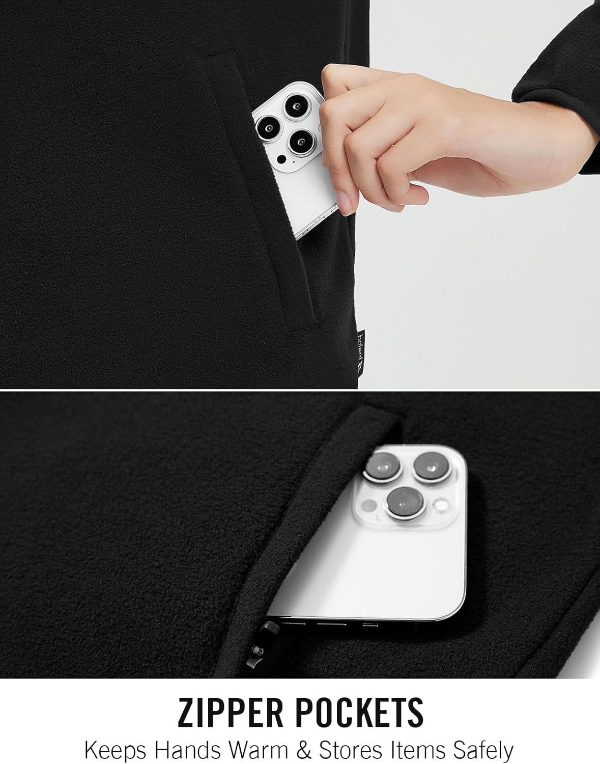 imagebaleaf Womens 14 Buttom Down Fleece Pullover Thermal Long Sleeve Shirts Ski Mid Layer with Pockets Thumbhole Warm TopsBlack