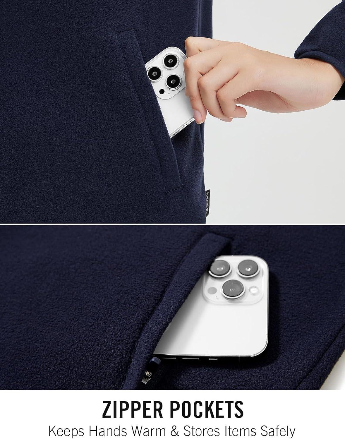 imagebaleaf Womens 14 Buttom Down Fleece Pullover Thermal Long Sleeve Shirts Ski Mid Layer with Pockets Thumbhole Warm TopsBlue