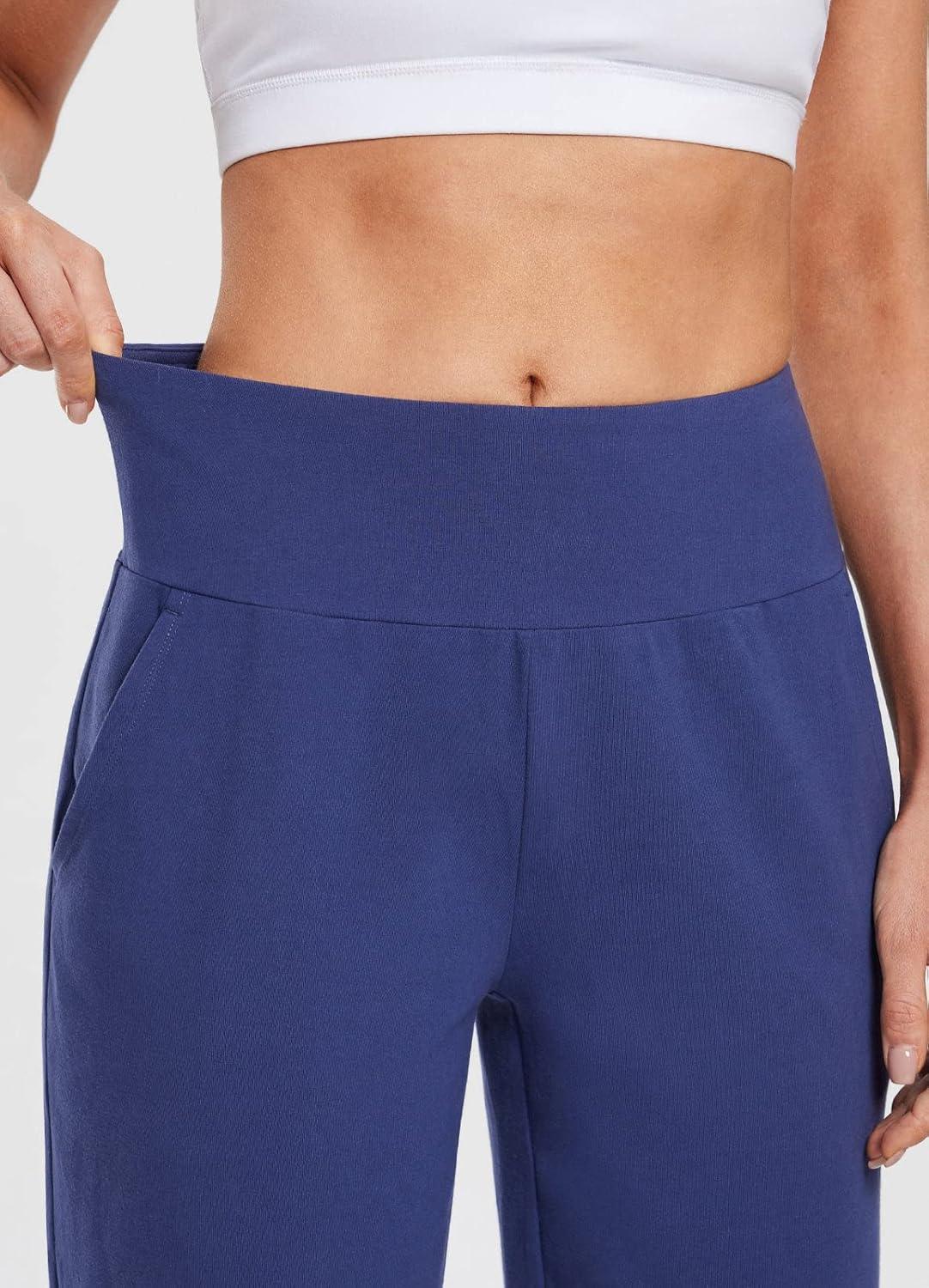 baleaf Womens 12″ Long Bermuda Shorts Knee Length Cotton Athletic Shorts Sweat Casual Lounge Walking Summer(12″-blue)