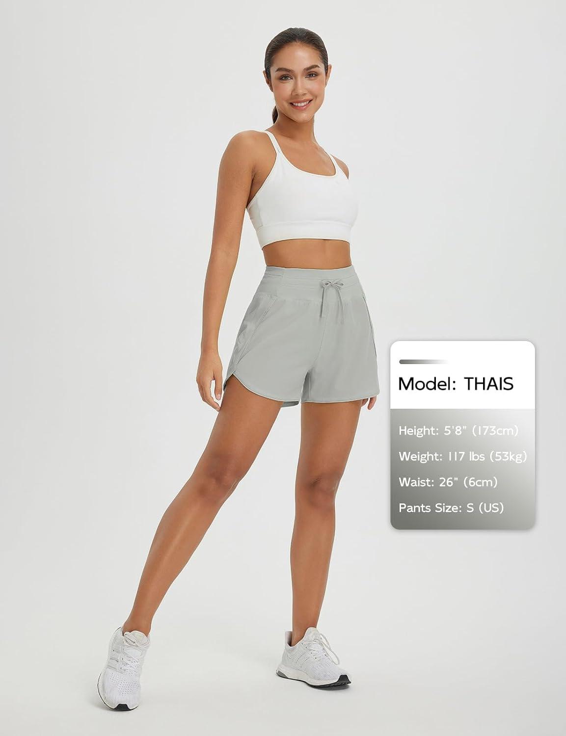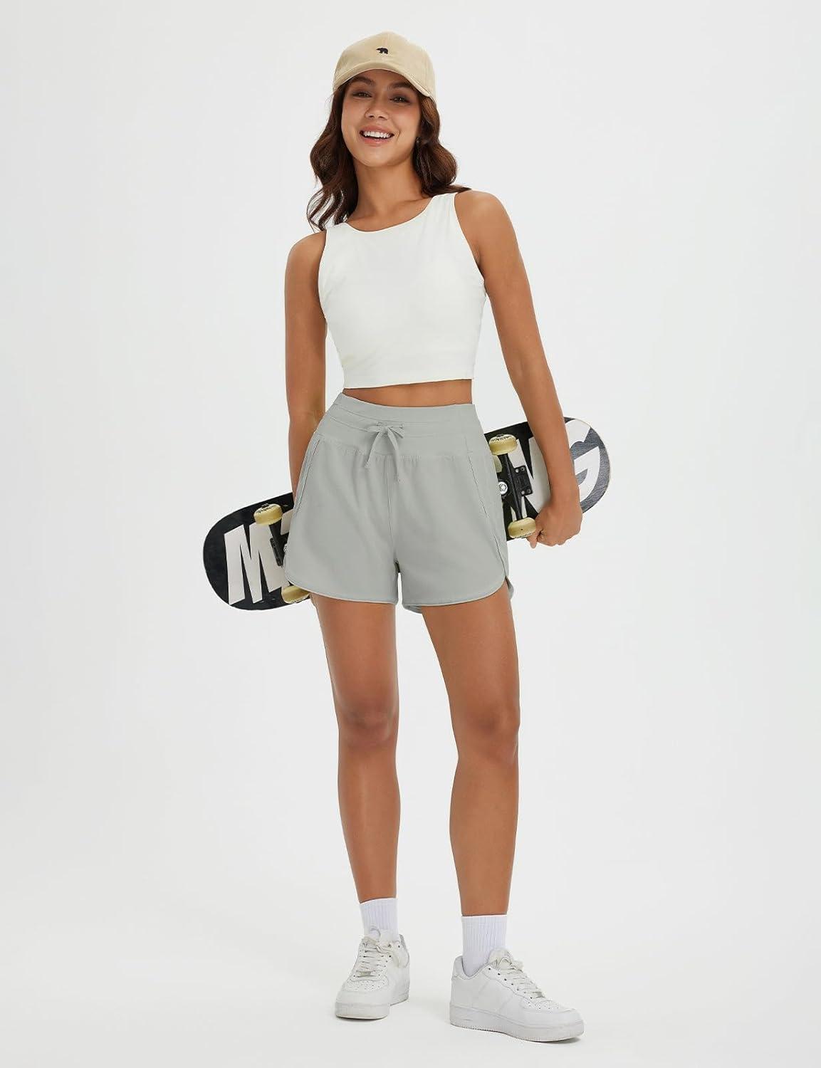 imagebaleaf Womens 3quot Athletic Shorts High Waist Running Workout Shorts with Zipper Pockets Gym Sports Quick Dry UPF 50Light Gray