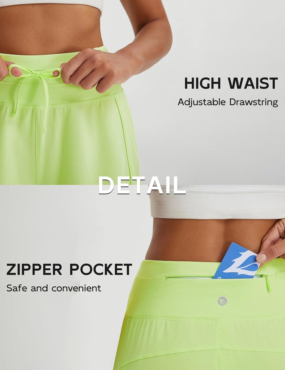 baleaf Women’s 3″ Athletic Shorts High Waist Running Workout Shorts with Zipper Pockets Gym Sports Quick Dry UPF 50+(Light Green)