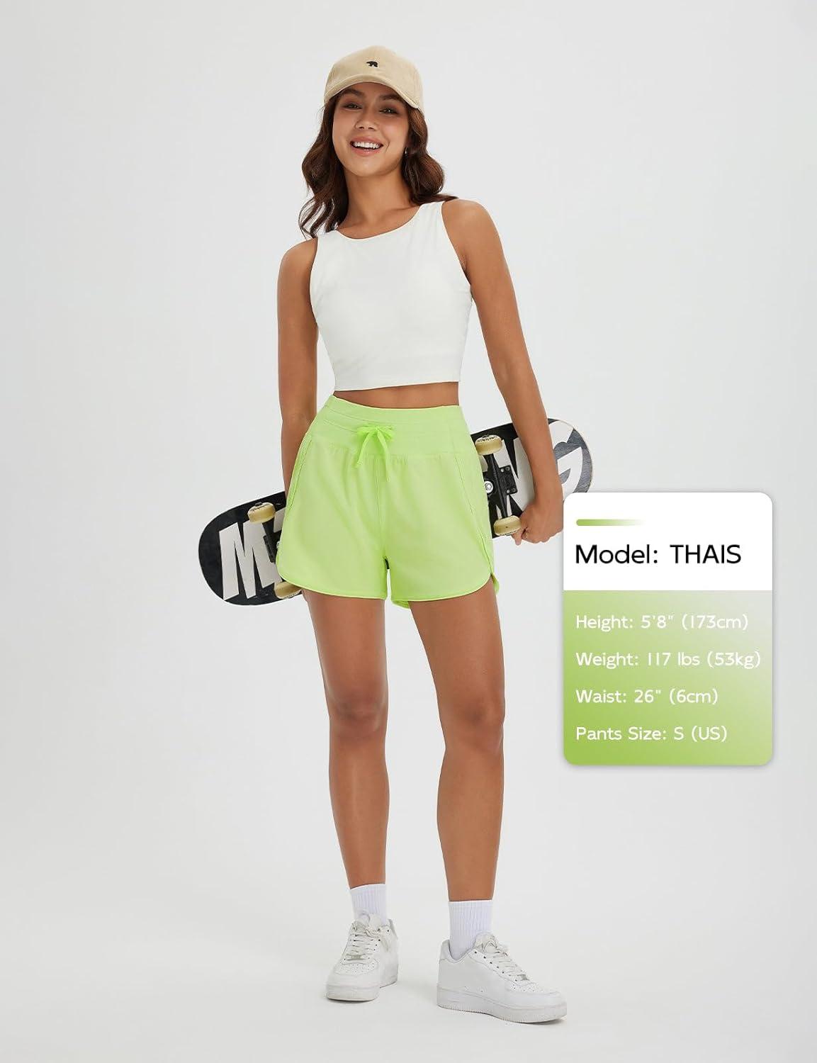 imagebaleaf Womens 3quot Athletic Shorts High Waist Running Workout Shorts with Zipper Pockets Gym Sports Quick Dry UPF 50Light Green