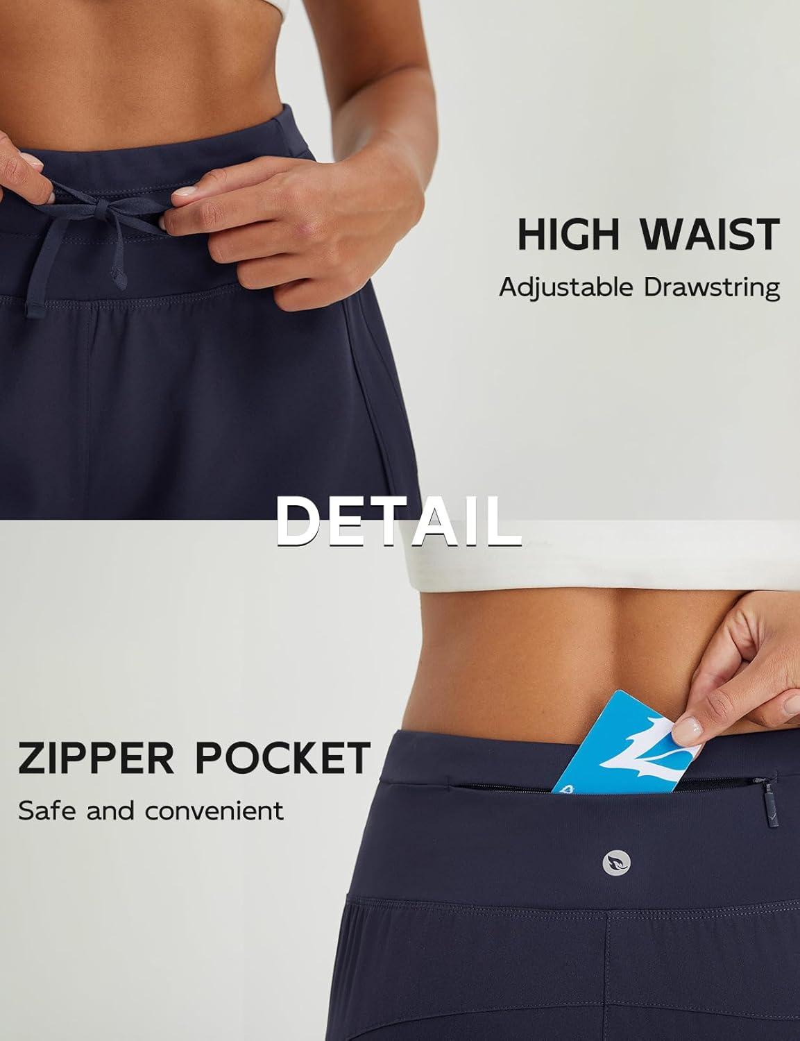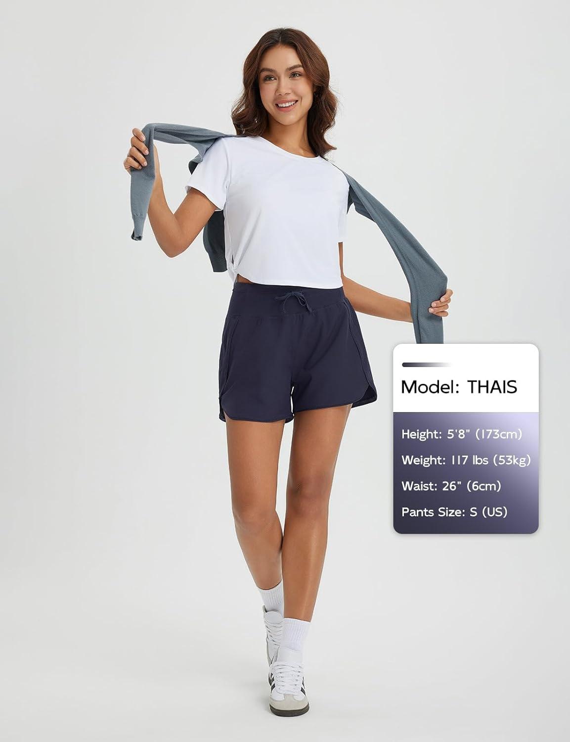 baleaf Women’s 3″ Athletic Shorts High Waist Running Workout Shorts with Zipper Pockets Gym Sports Quick Dry UPF 50+(Navy Blue)