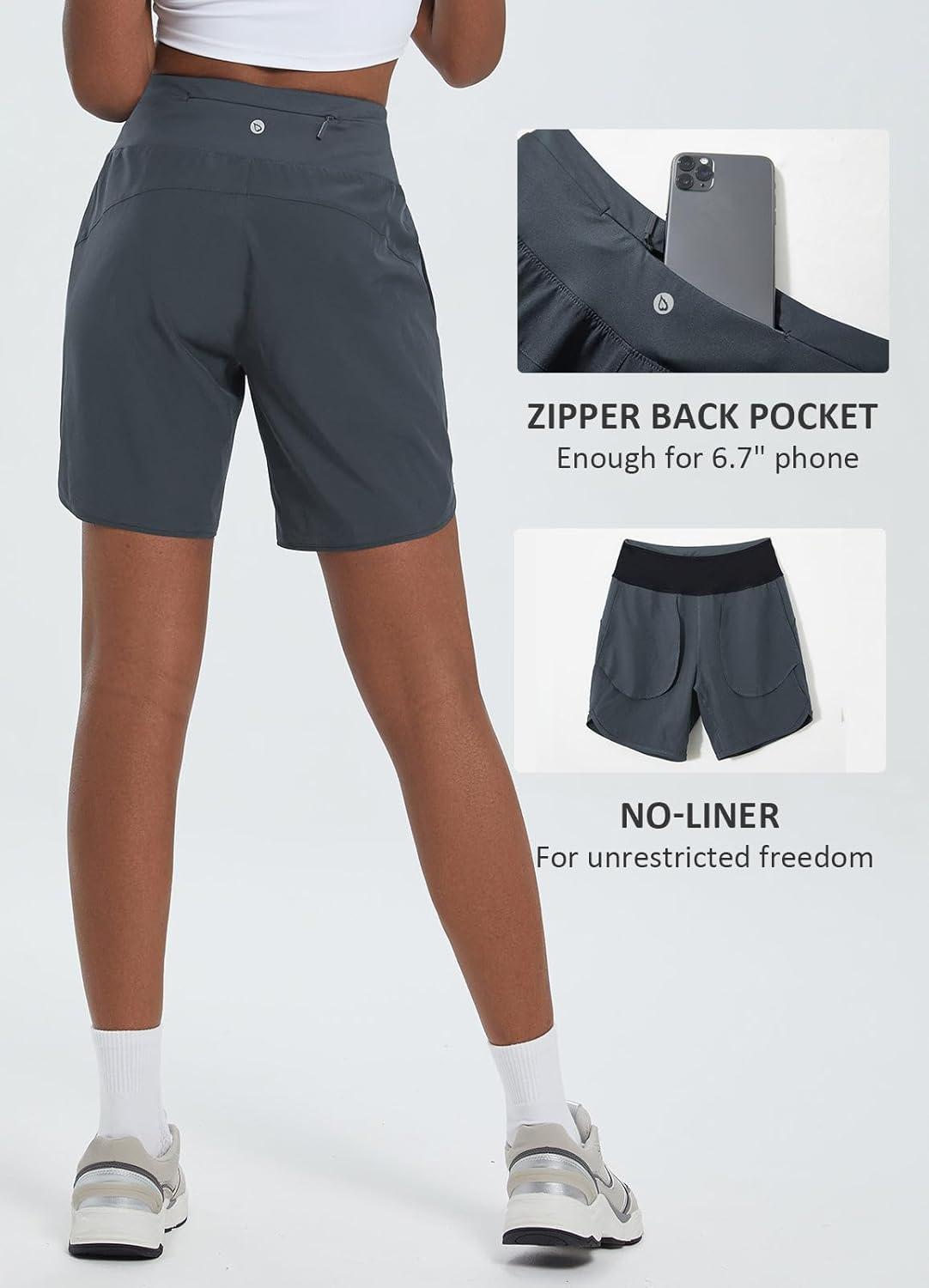baleaf Women’s 7″ Athletic Long Running Shorts Workout Gym Quick Dry Hiking Shorts High Waisted Zipper Pocket(Dark Gray)