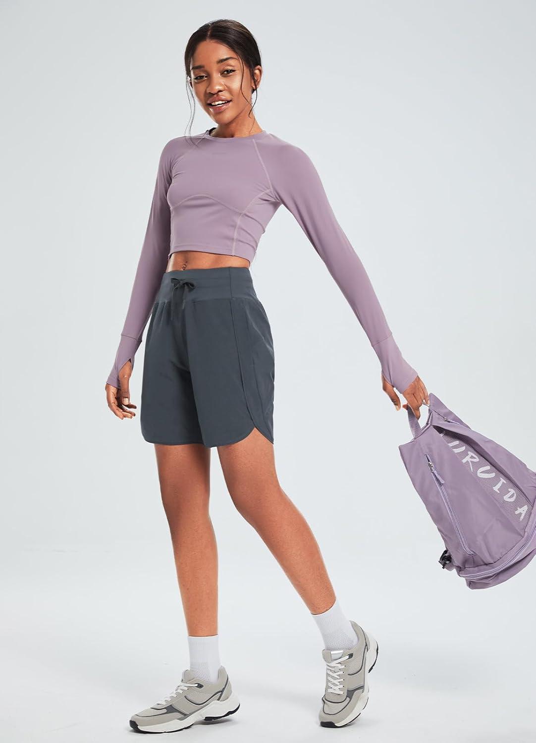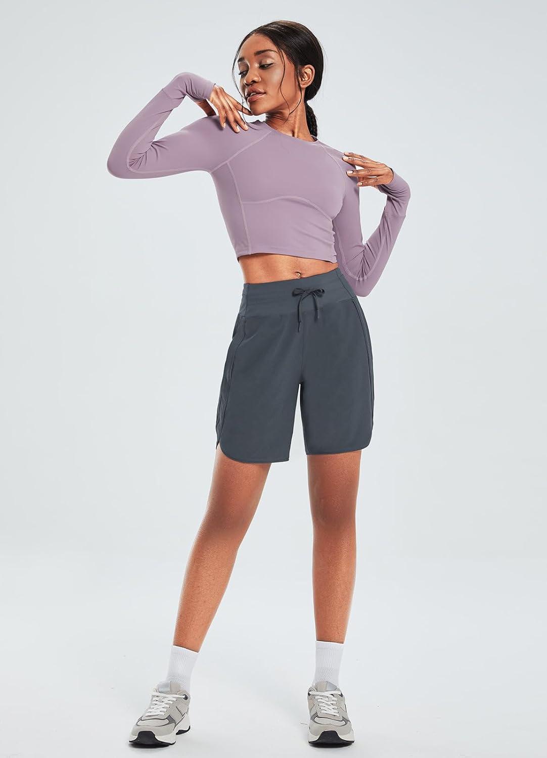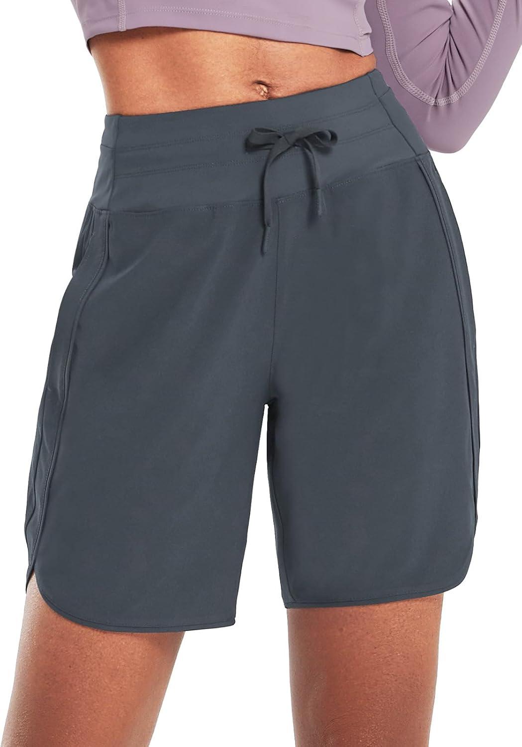imagebaleaf Womens 7quot Athletic Long Running Shorts Workout Gym Quick Dry Hiking Shorts High Waisted Zipper PocketDark Gray