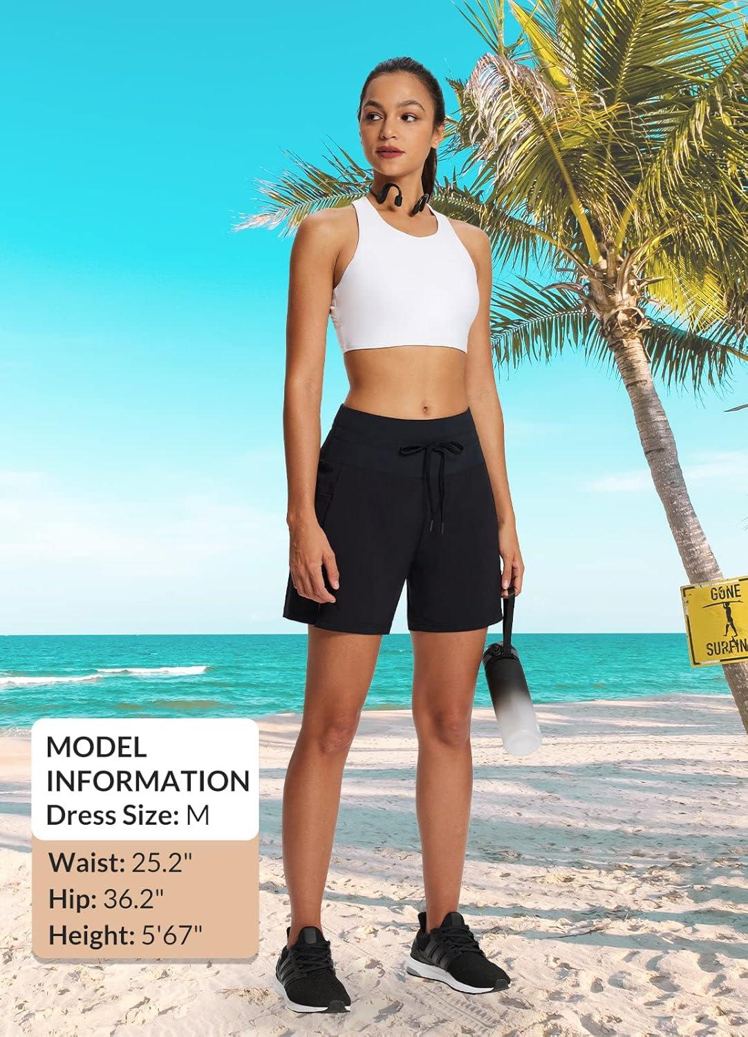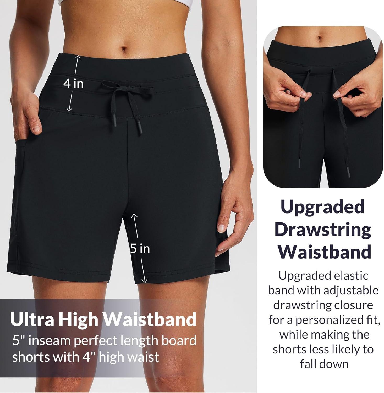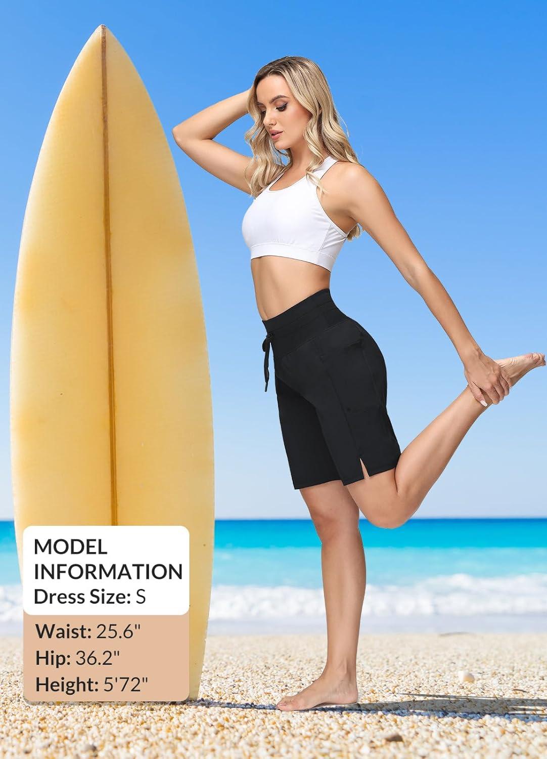 imagebaleaf Womens 9quot High Waisted Swim Board Shorts Quick Dry Swimsuits Bottoms with DrawstringBlack