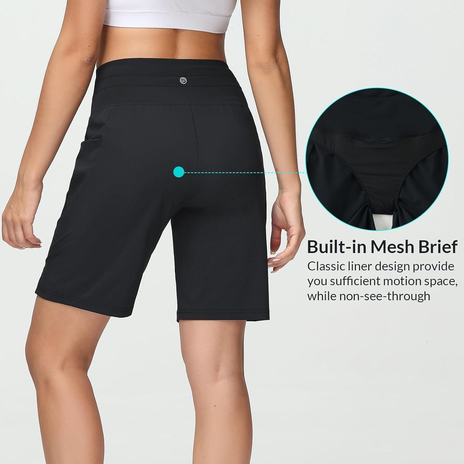 baleaf Women’s 9″ High Waisted Swim Board Shorts Quick Dry Swimsuits Bottoms with Drawstring(Black)