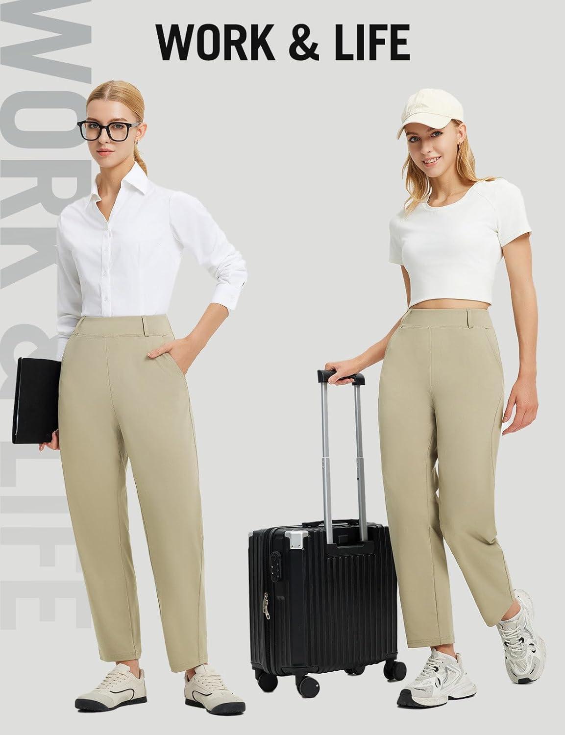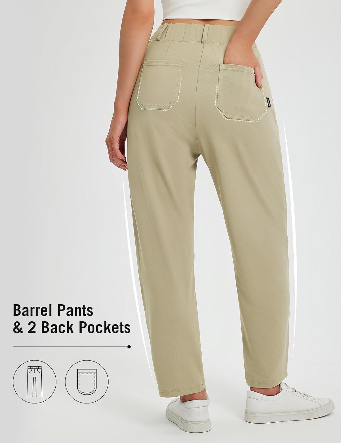 imagebaleaf Womens Ankle Barrel Pants Stretch Travel Pants Petite Work Pants Casual Slacks with PocketsKhiki