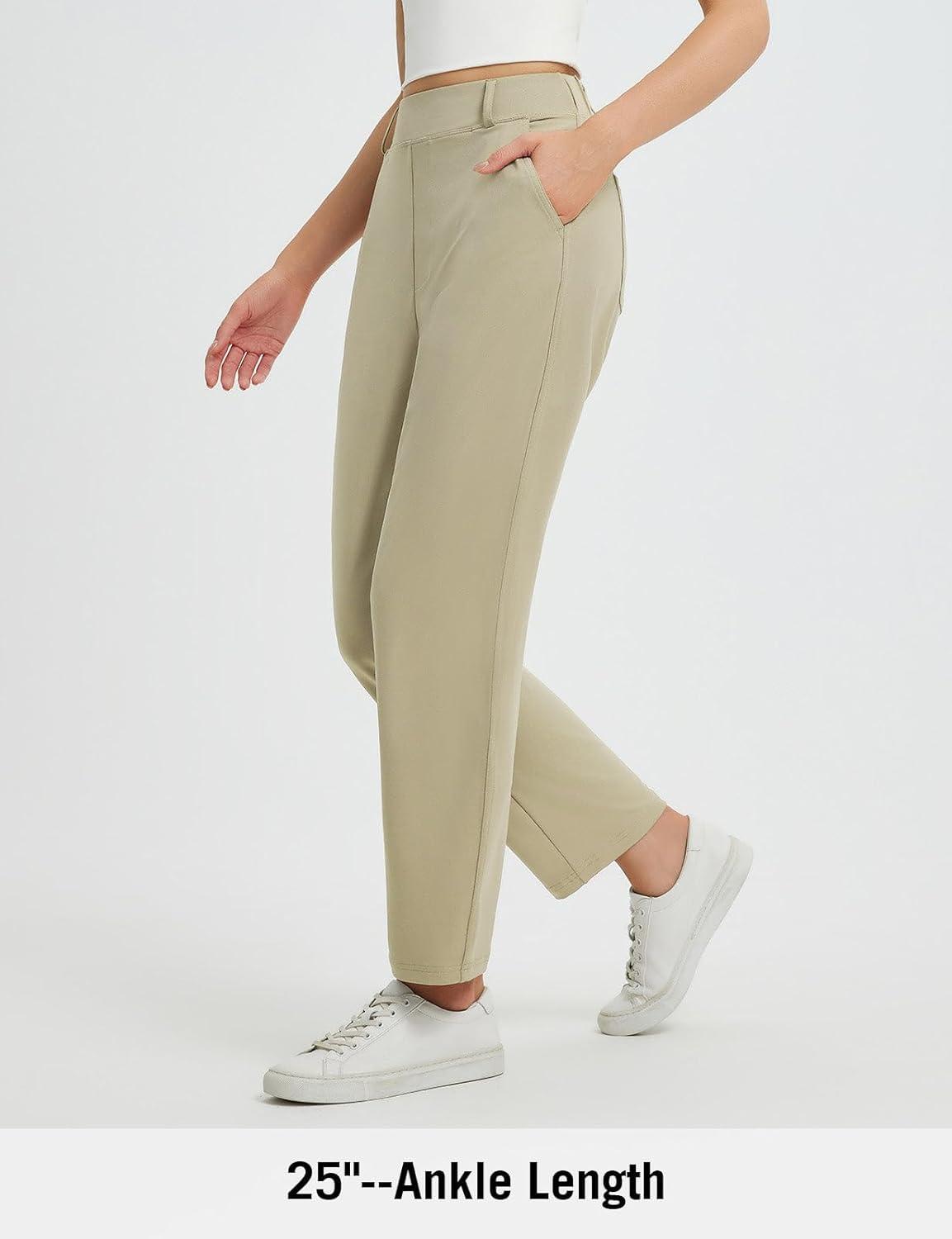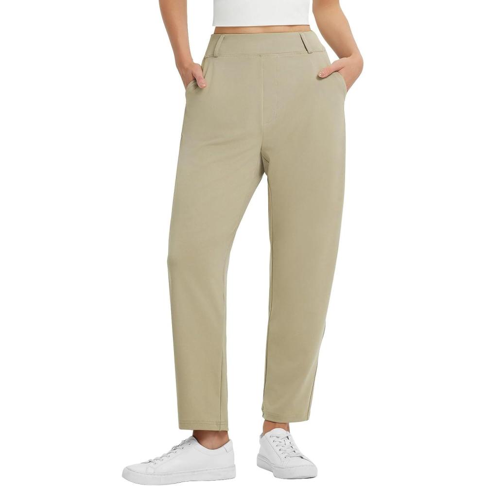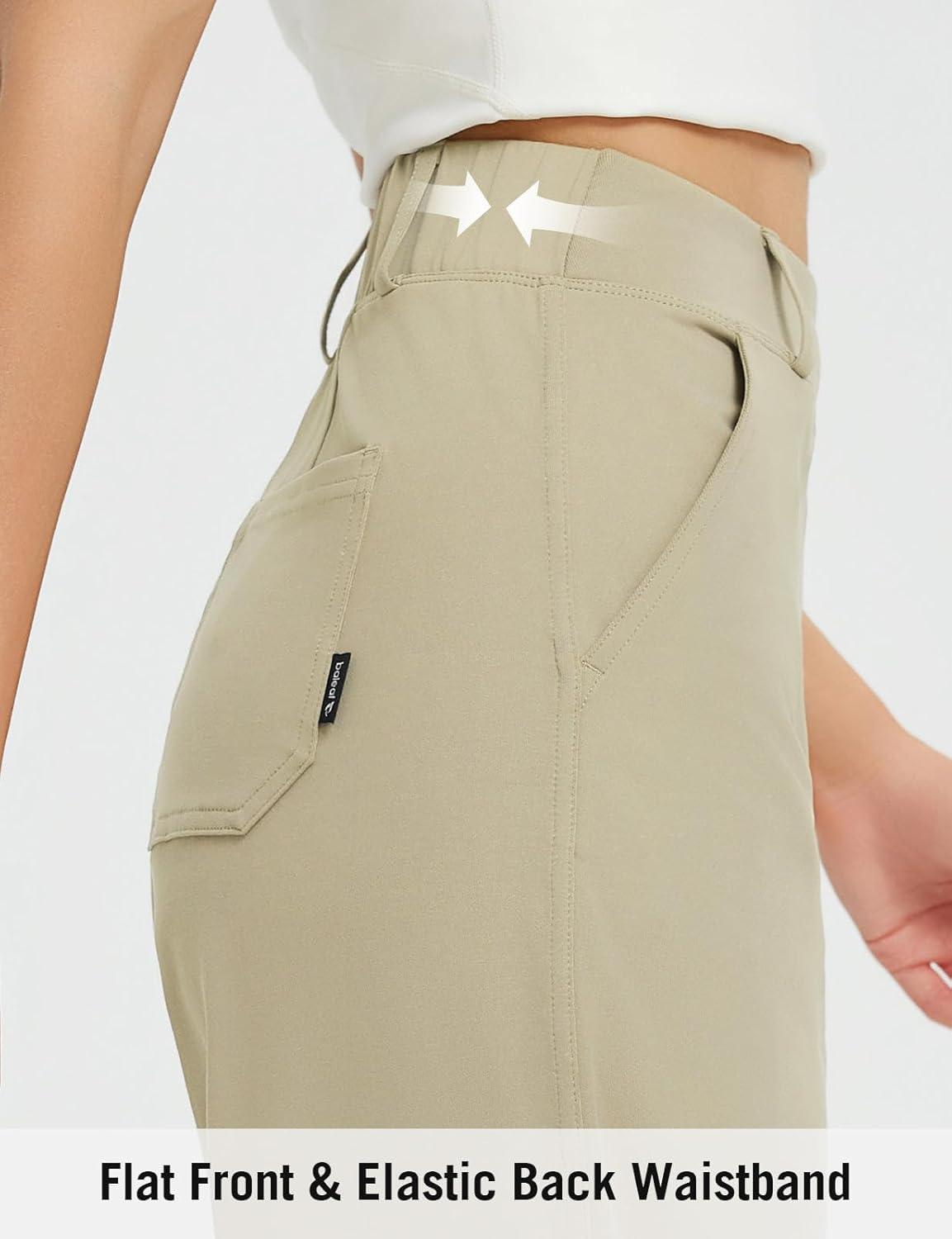 baleaf Womens Ankle Barrel Pants Stretch Travel Pants Petite Work Pants Casual Slacks with Pockets(Khiki)