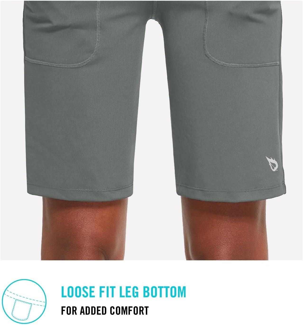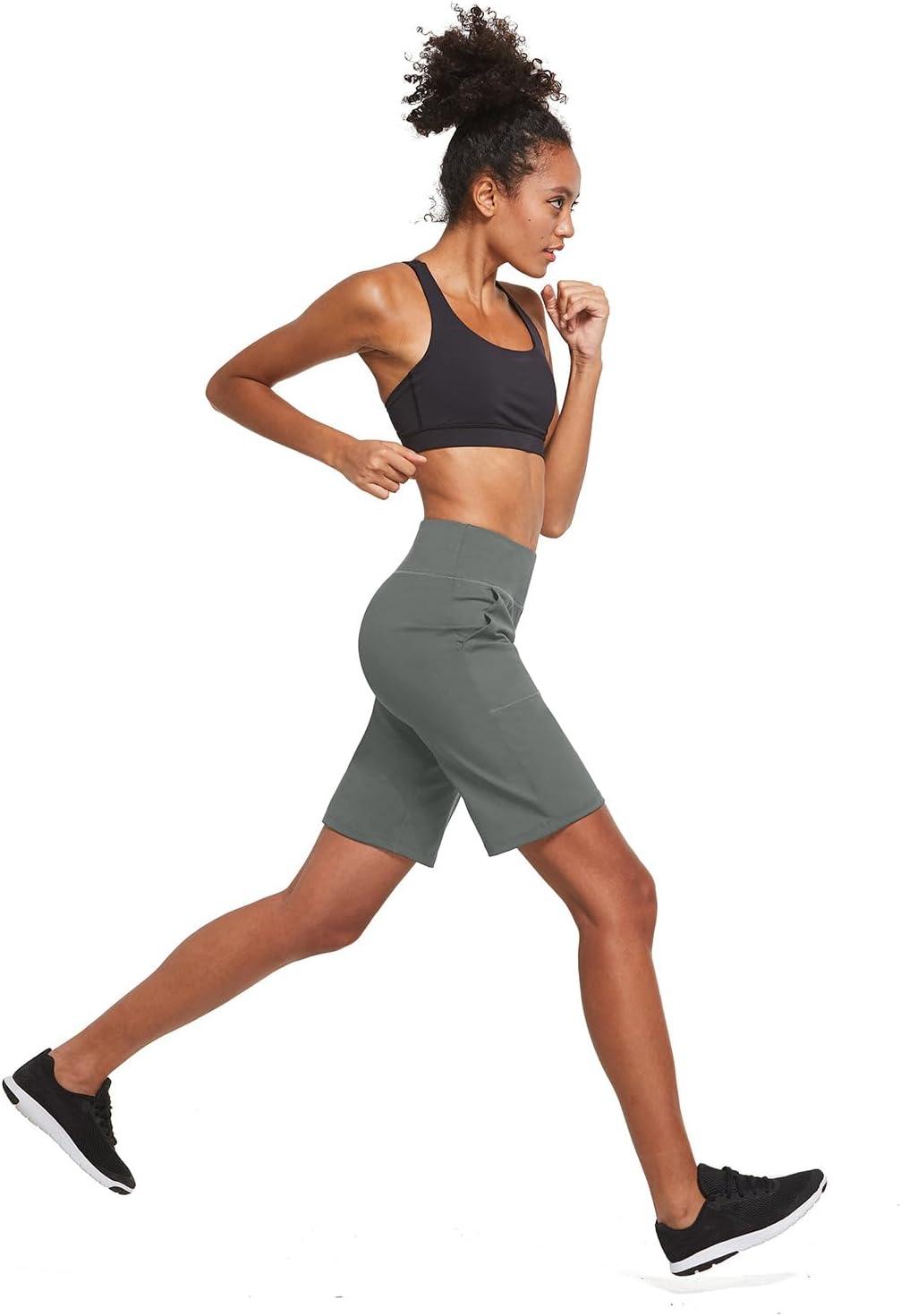 baleaf Women’s Bermuda Long Shorts 10″ Knee Length High Rise Athletic Shorts Pull On Workout Walking Golf Running Summer(Gray)