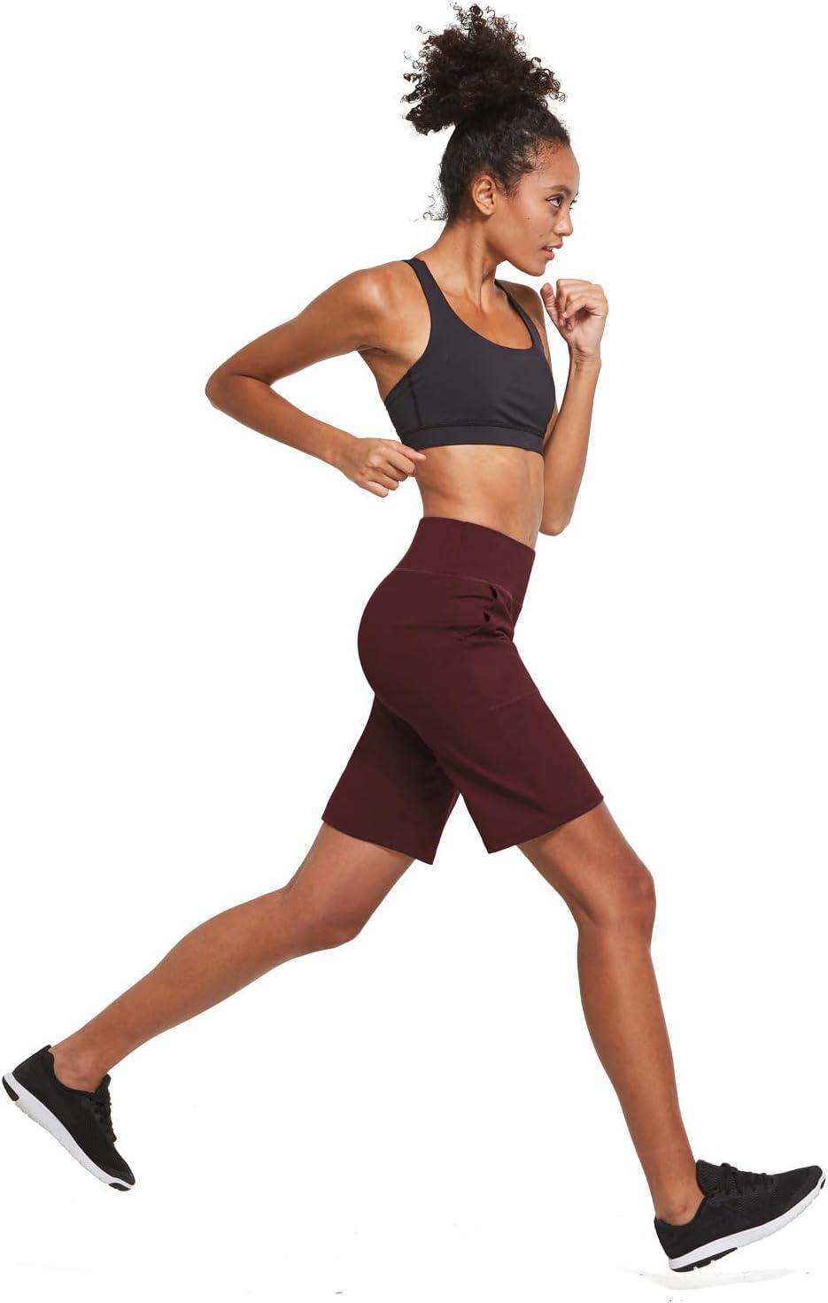 baleaf Women's Bermuda Long Shorts 10" Knee Length High Rise Athletic Shorts Pull On Workout Walking Golf Running Summer(Wine Red)