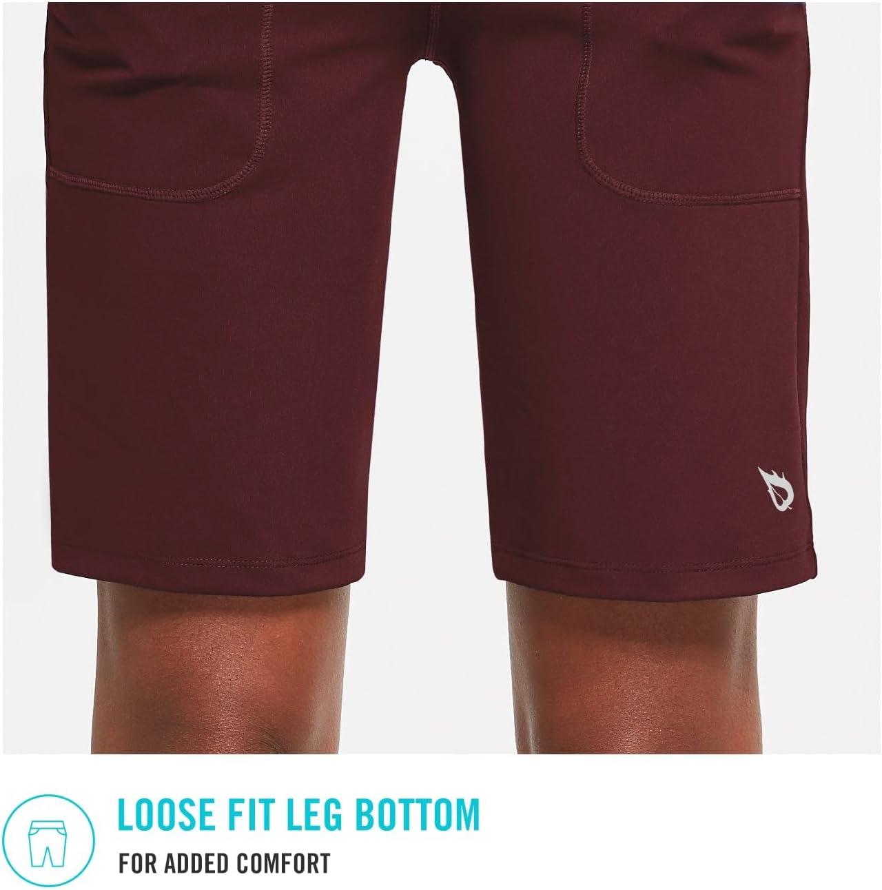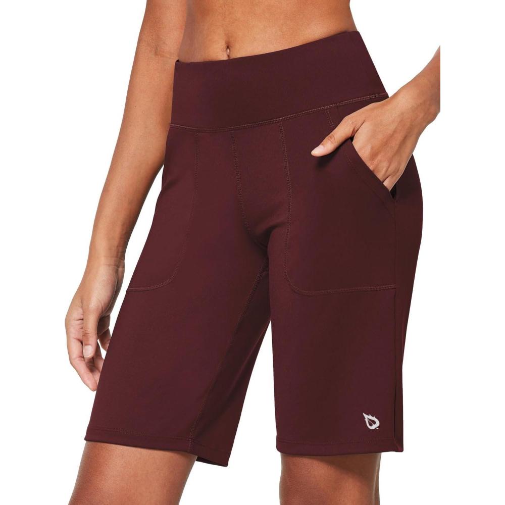 baleaf Women’s Bermuda Long Shorts 10″ Knee Length High Rise Athletic Shorts Pull On Workout Walking Golf Running Summer(Wine Red)