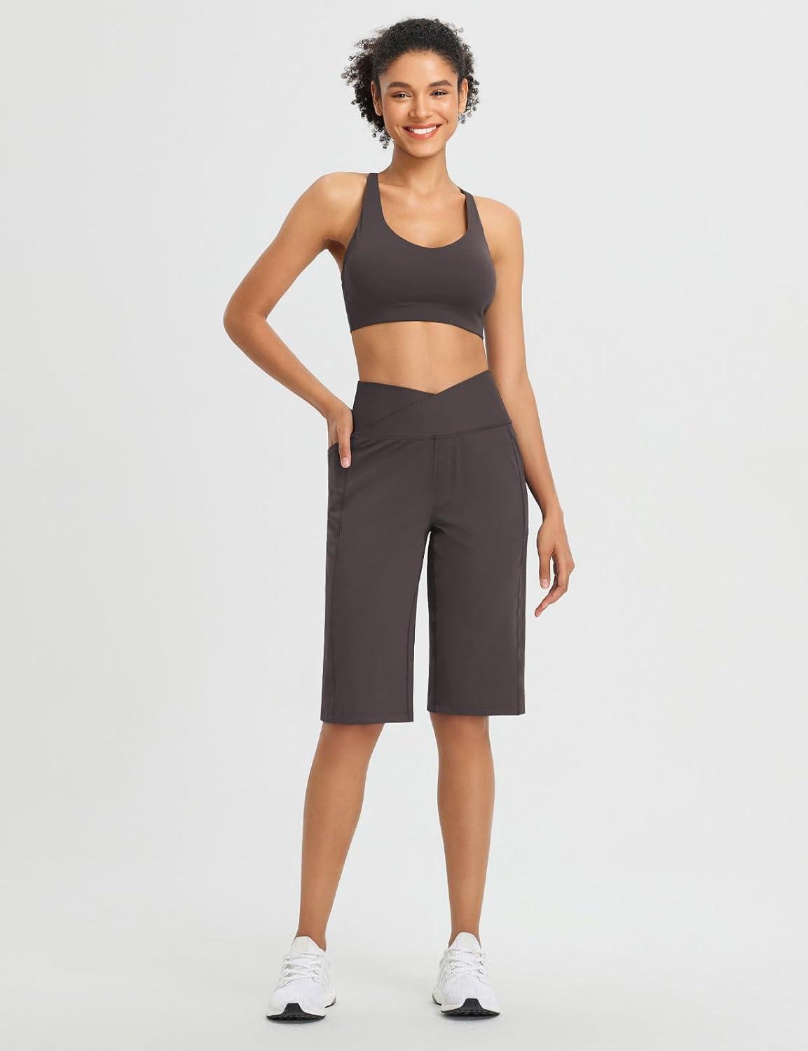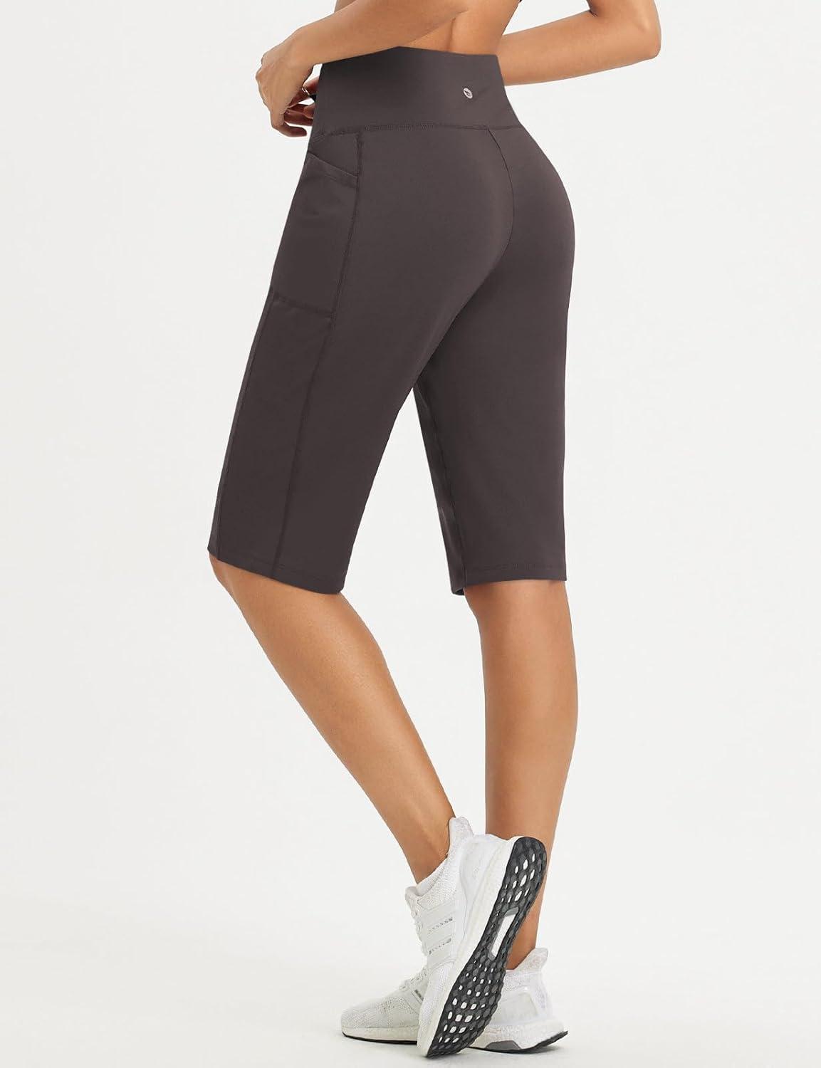 baleaf Womens Bermuda Long Shorts 14″ Knee Length Capris High Waisted Athletic Shorts with Pockets Summer Stretch Loose(Seal Brown)