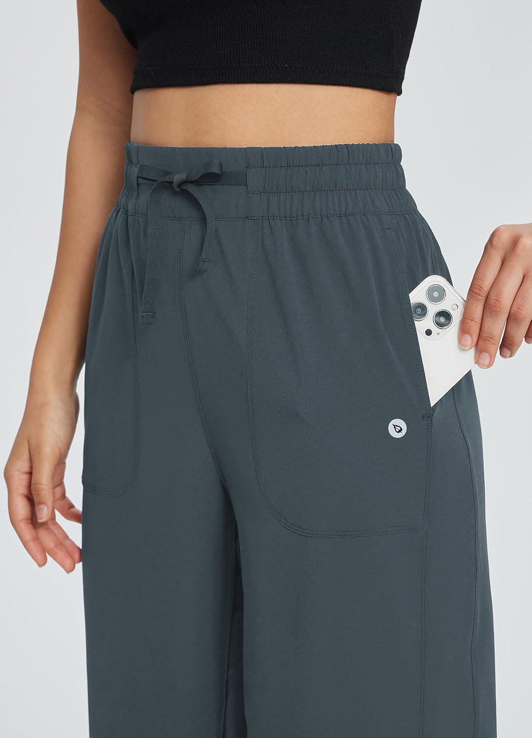 baleaf Women’s Capri Pants Wide Leg Plus Size UPF50+ Lightweight Quick Dry Pants Casual Loose Sweatpants Hiking Walking(21″ Capris-grey)